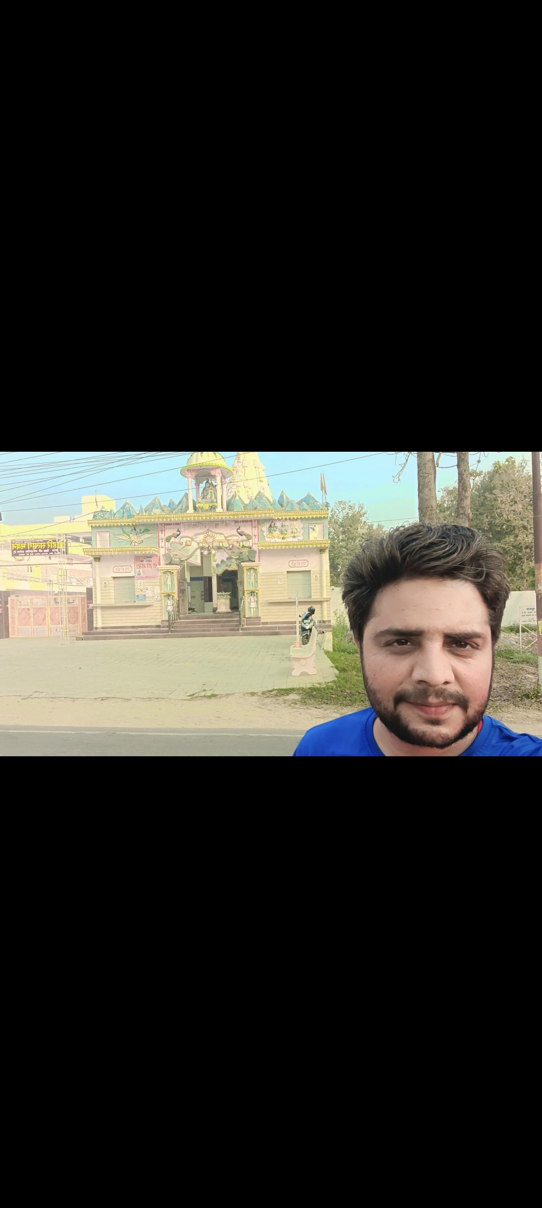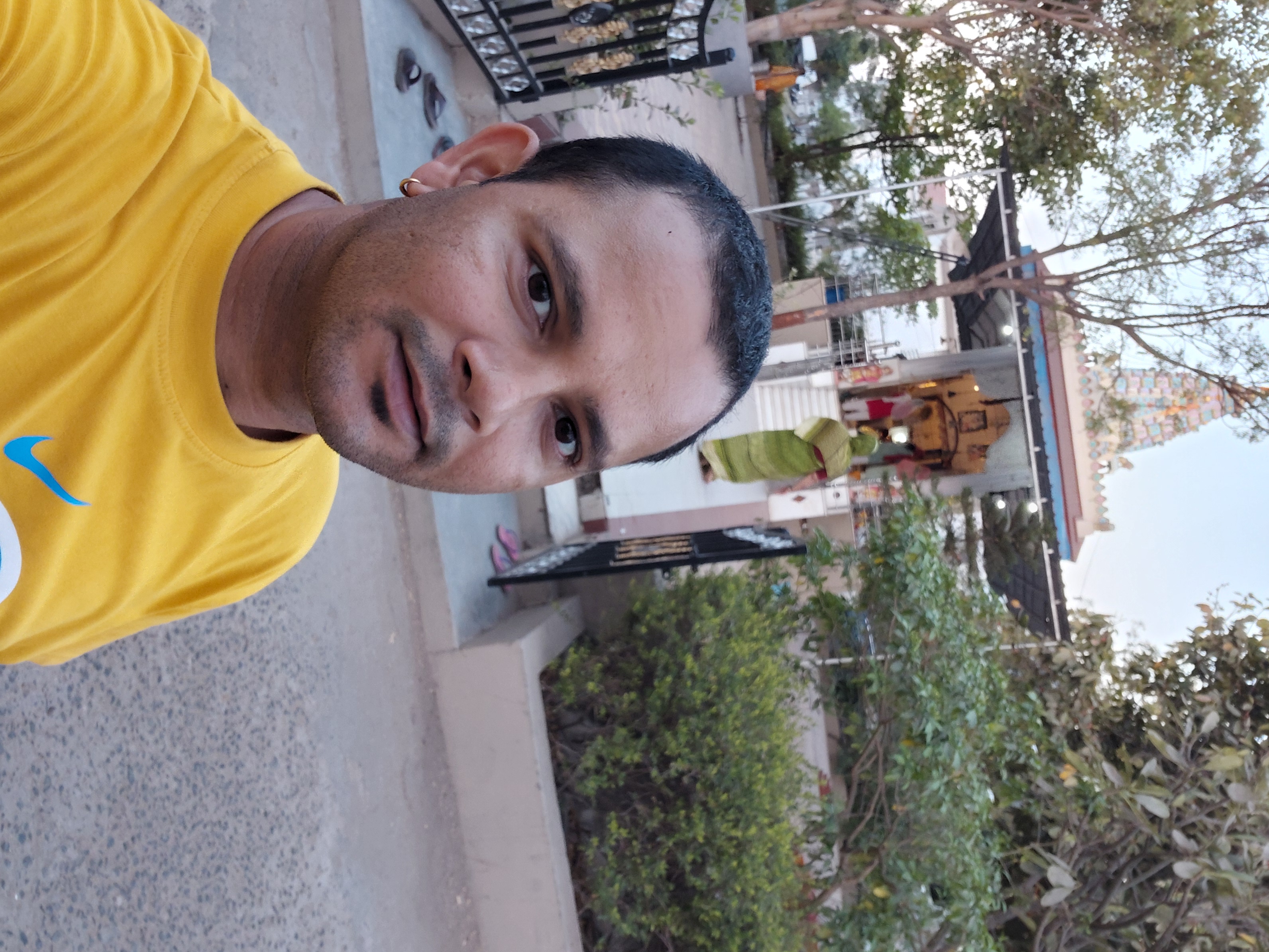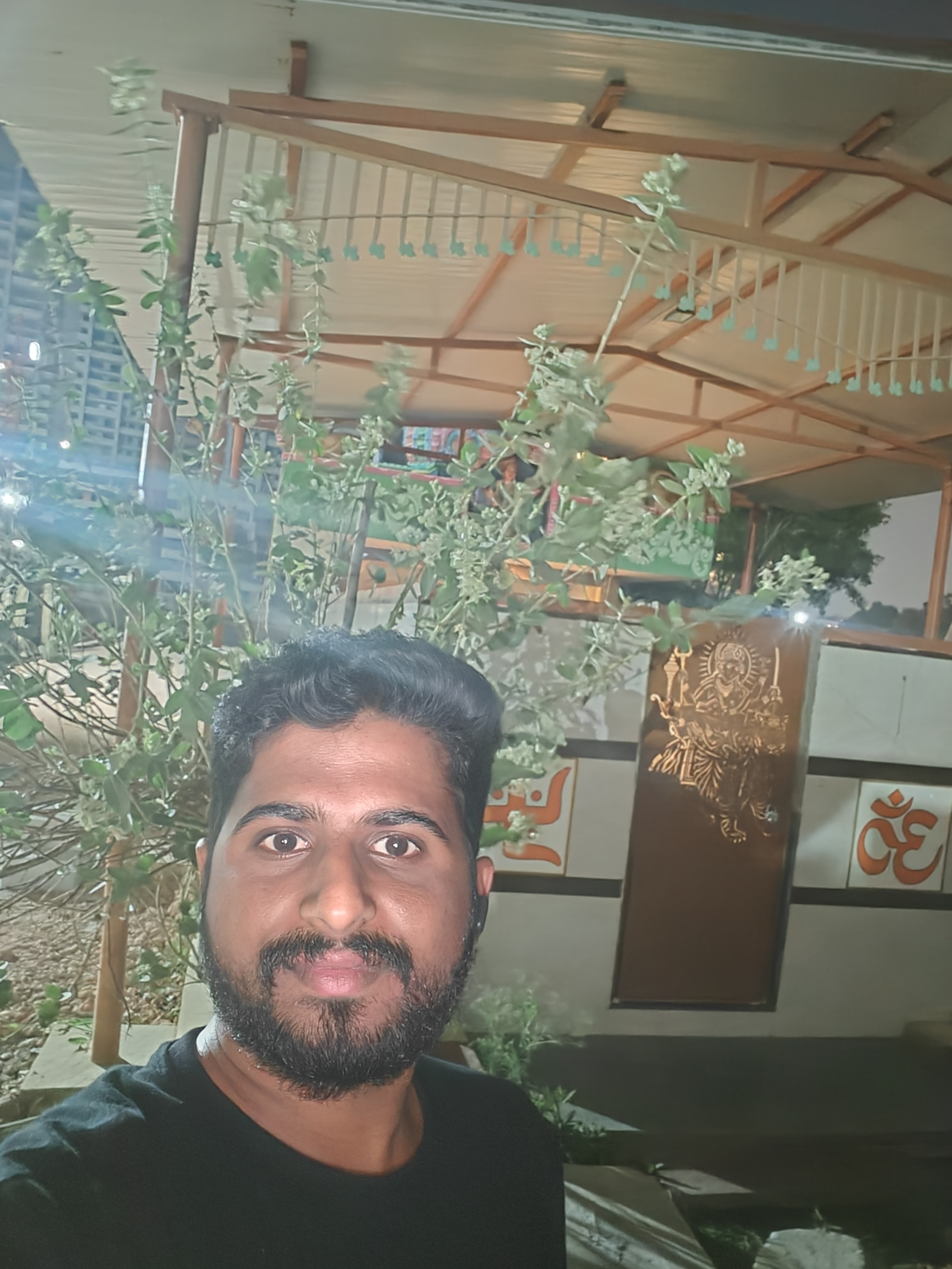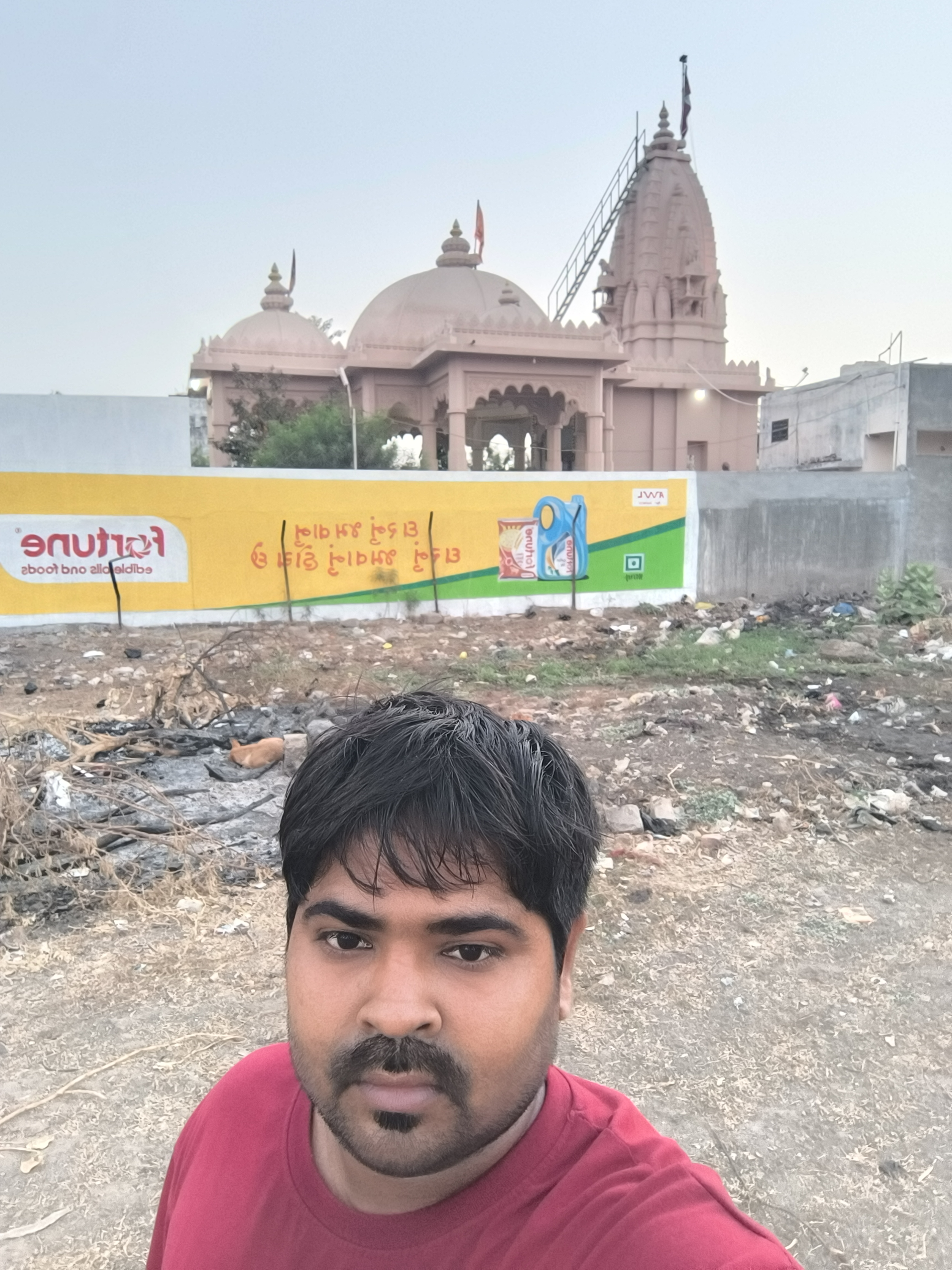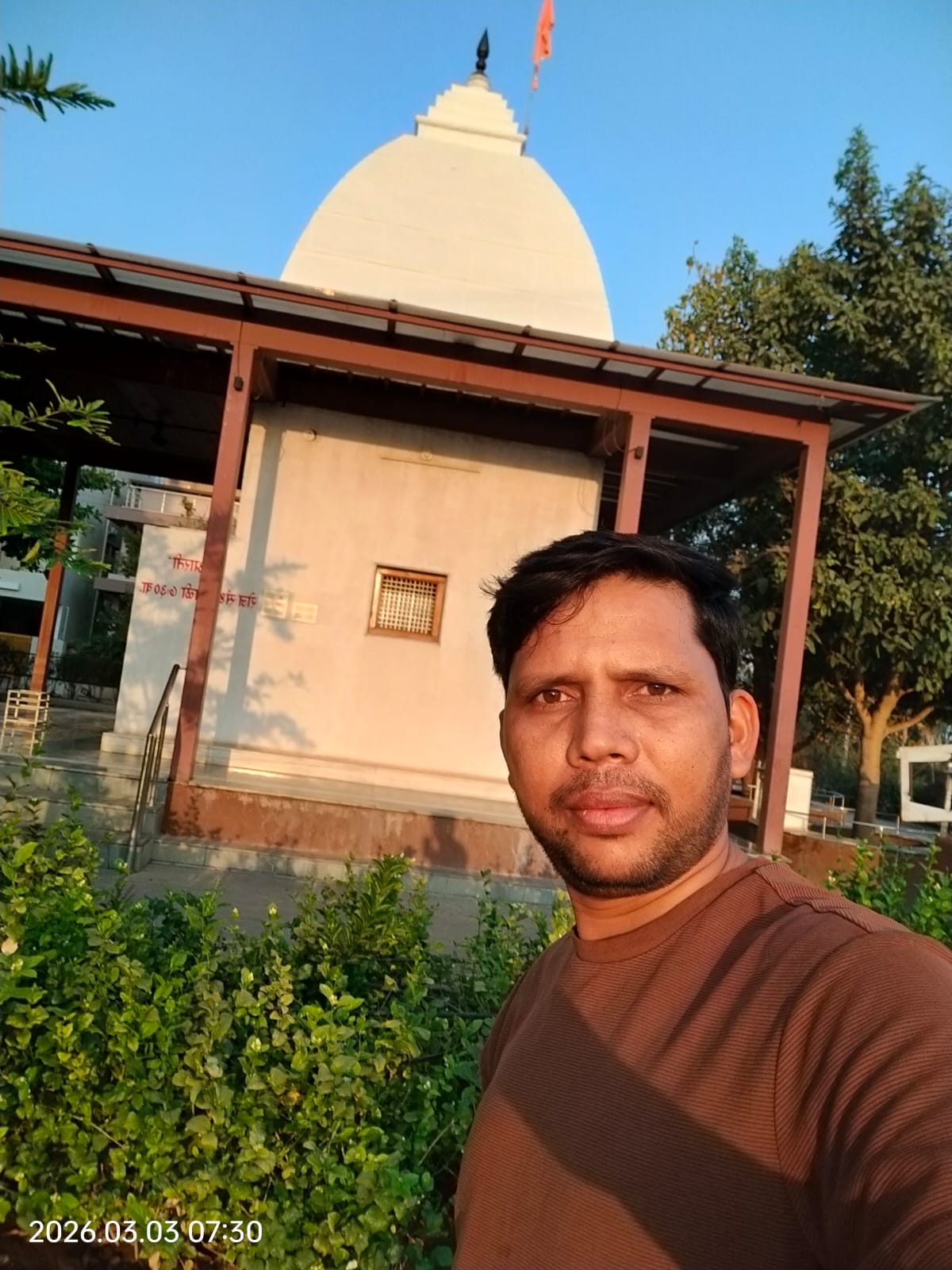 Selfie with Hanuman mandir in Ivy Botanica temple.Feeling proud during walk with selfie of temple