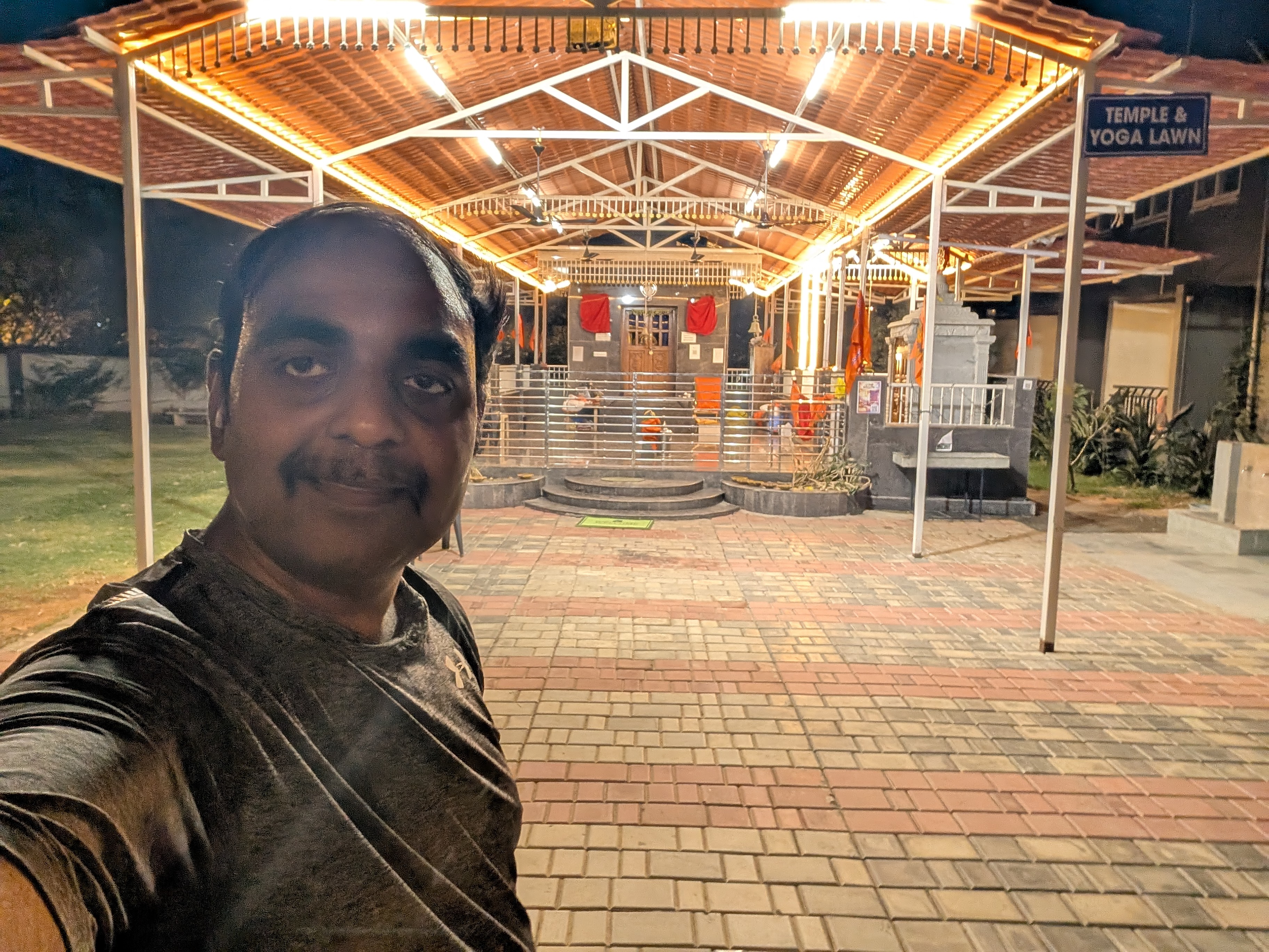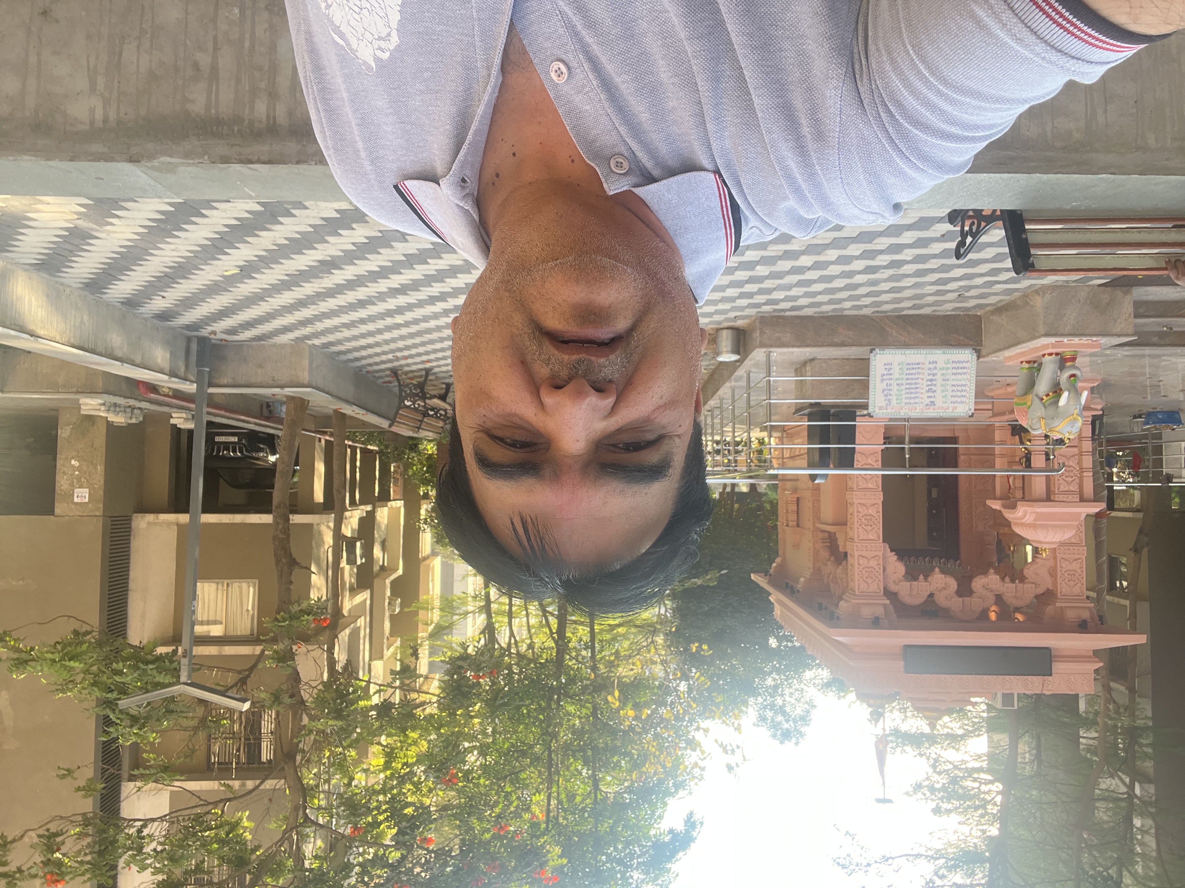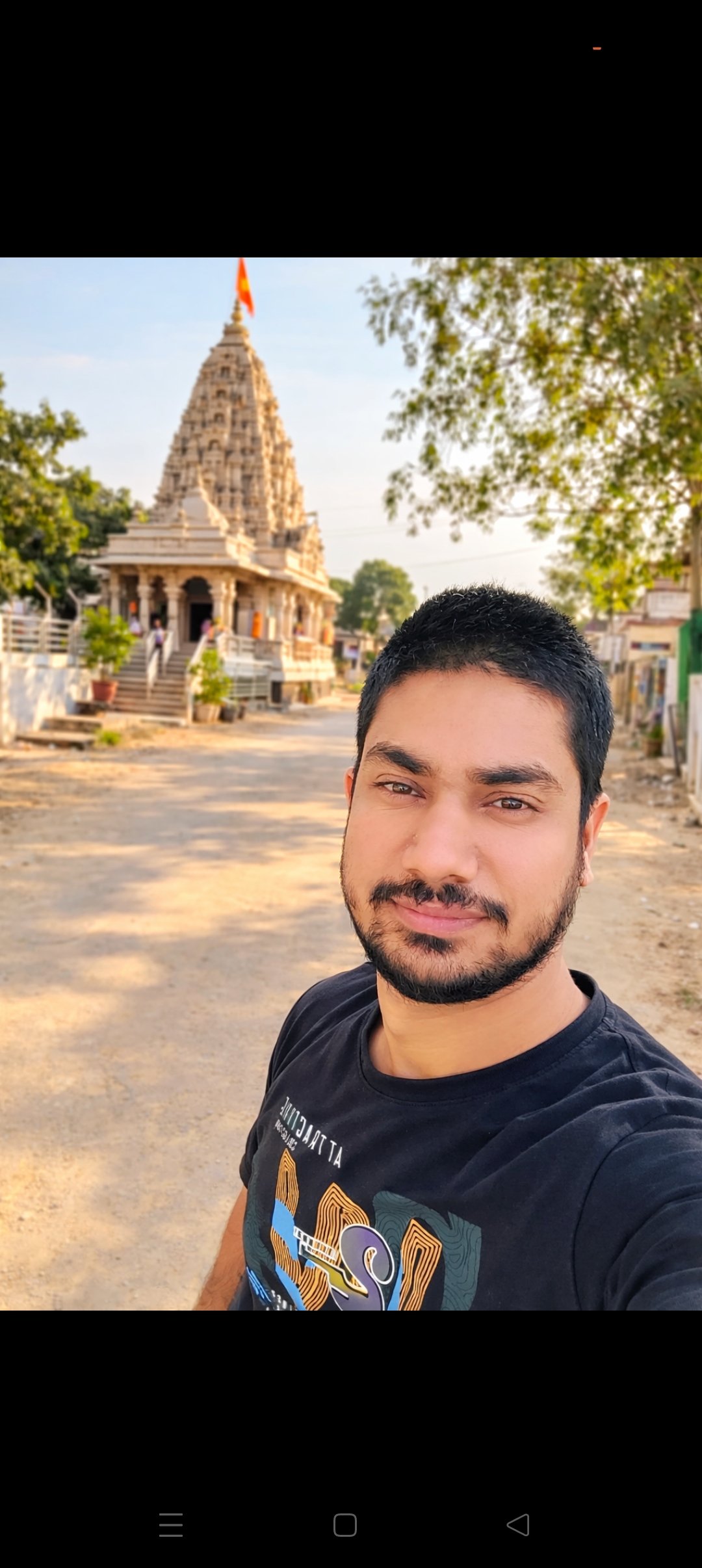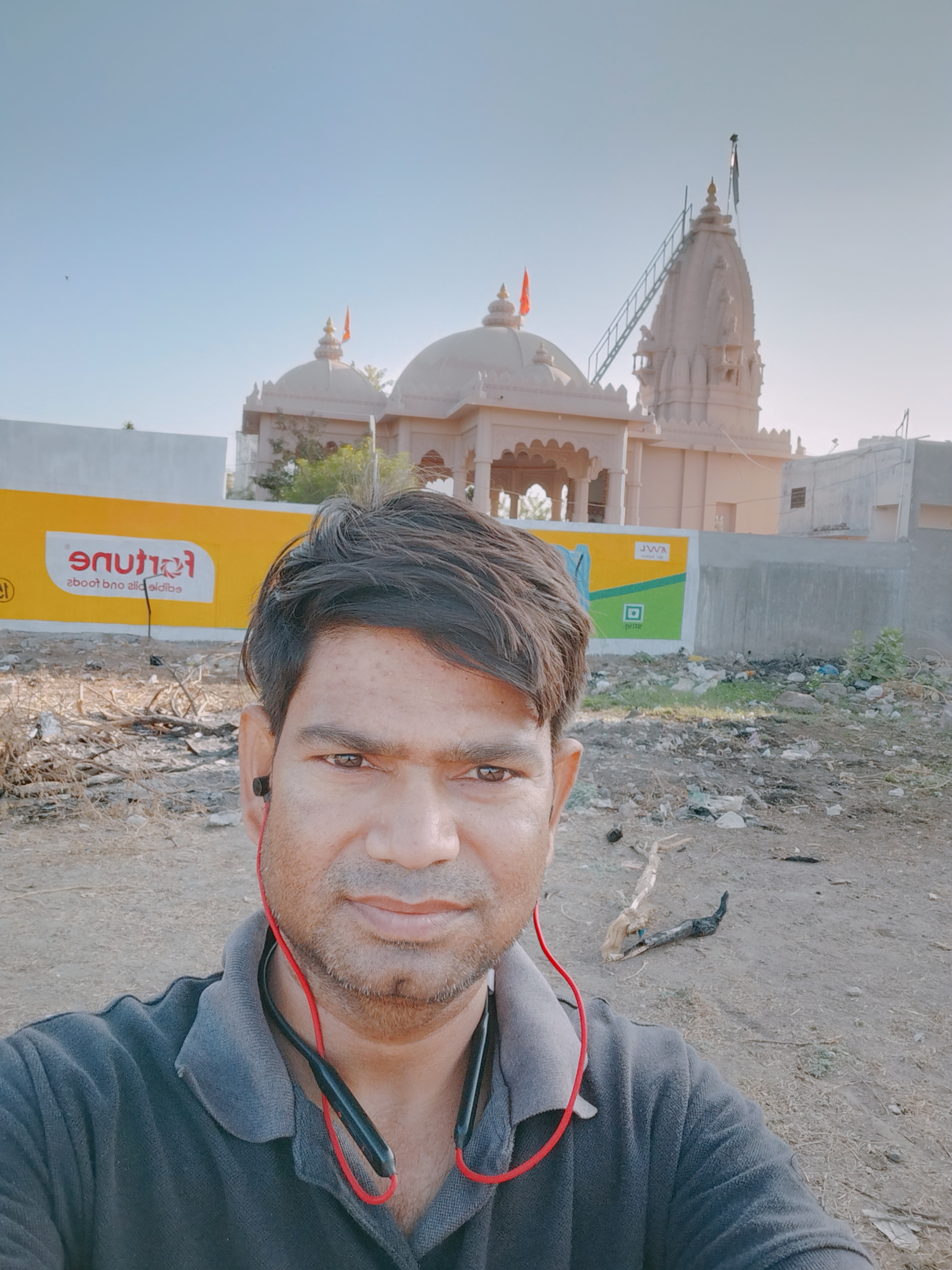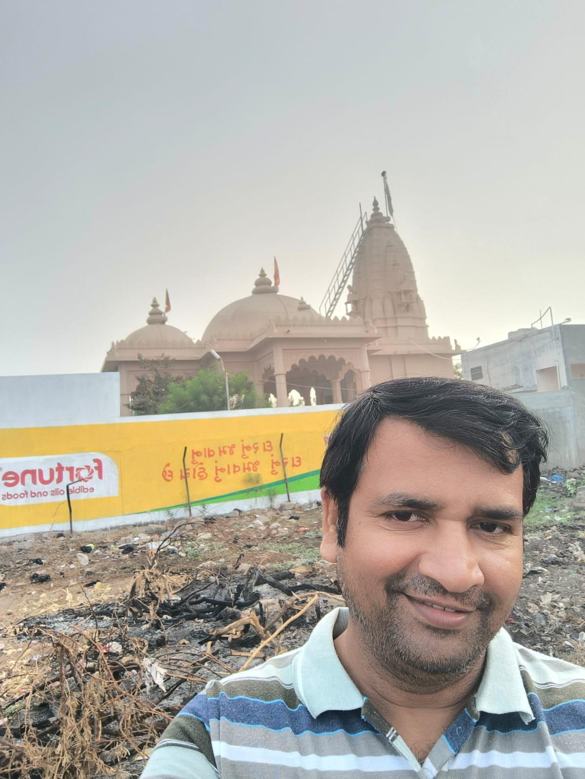 Selfie with Hanuman mandir in Ivy Botanica temple.Feeling proud during walk with selfie of temple