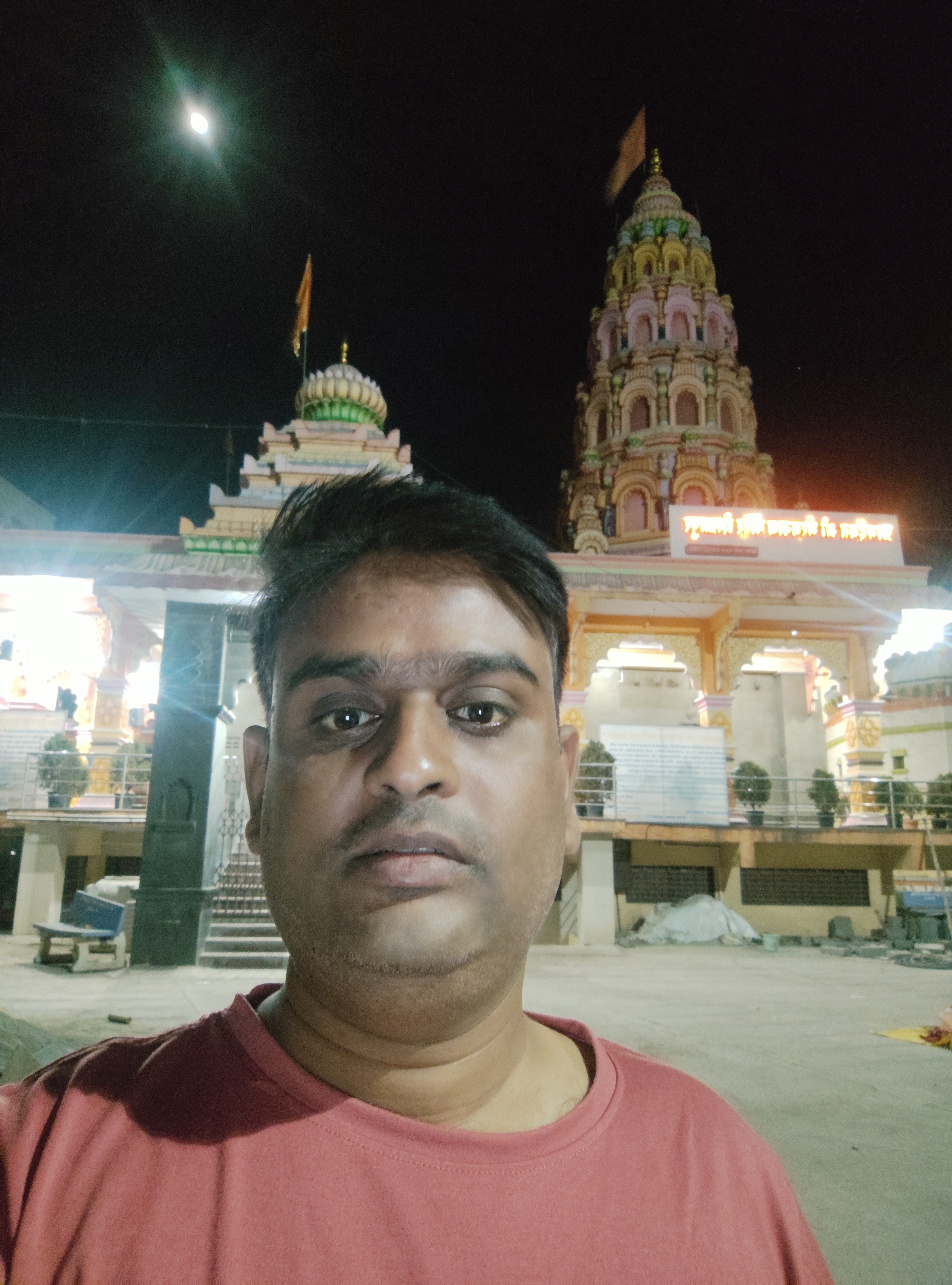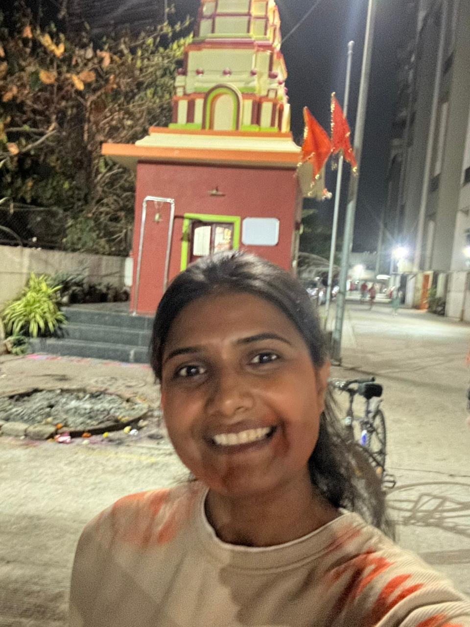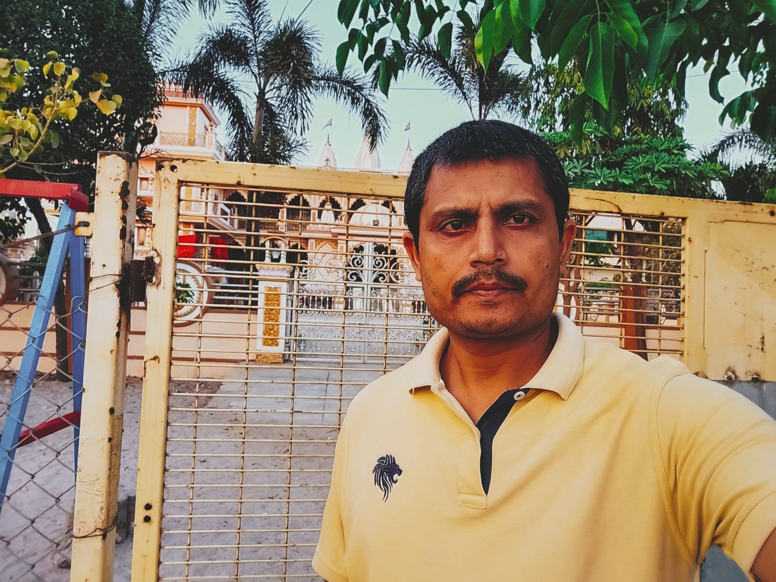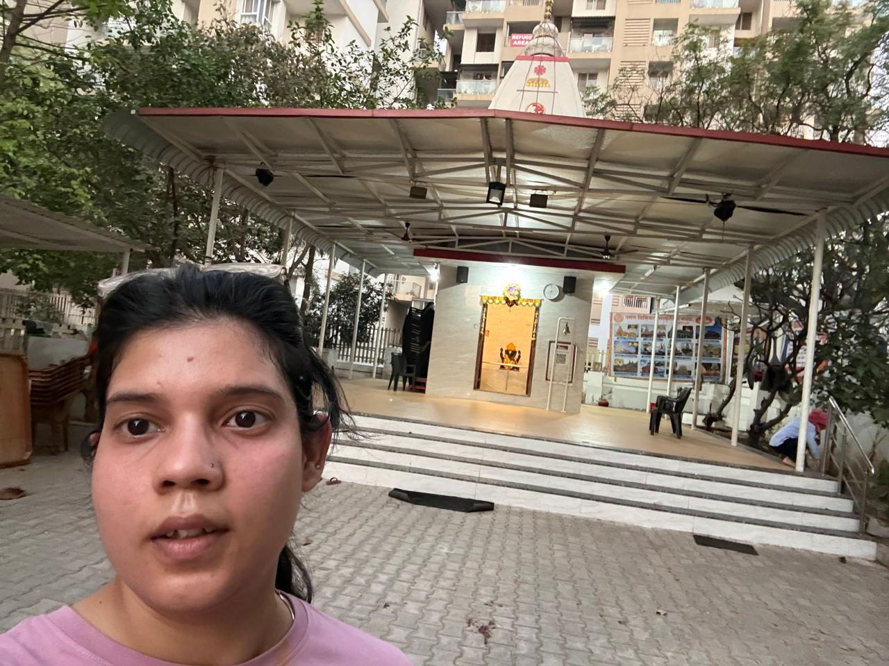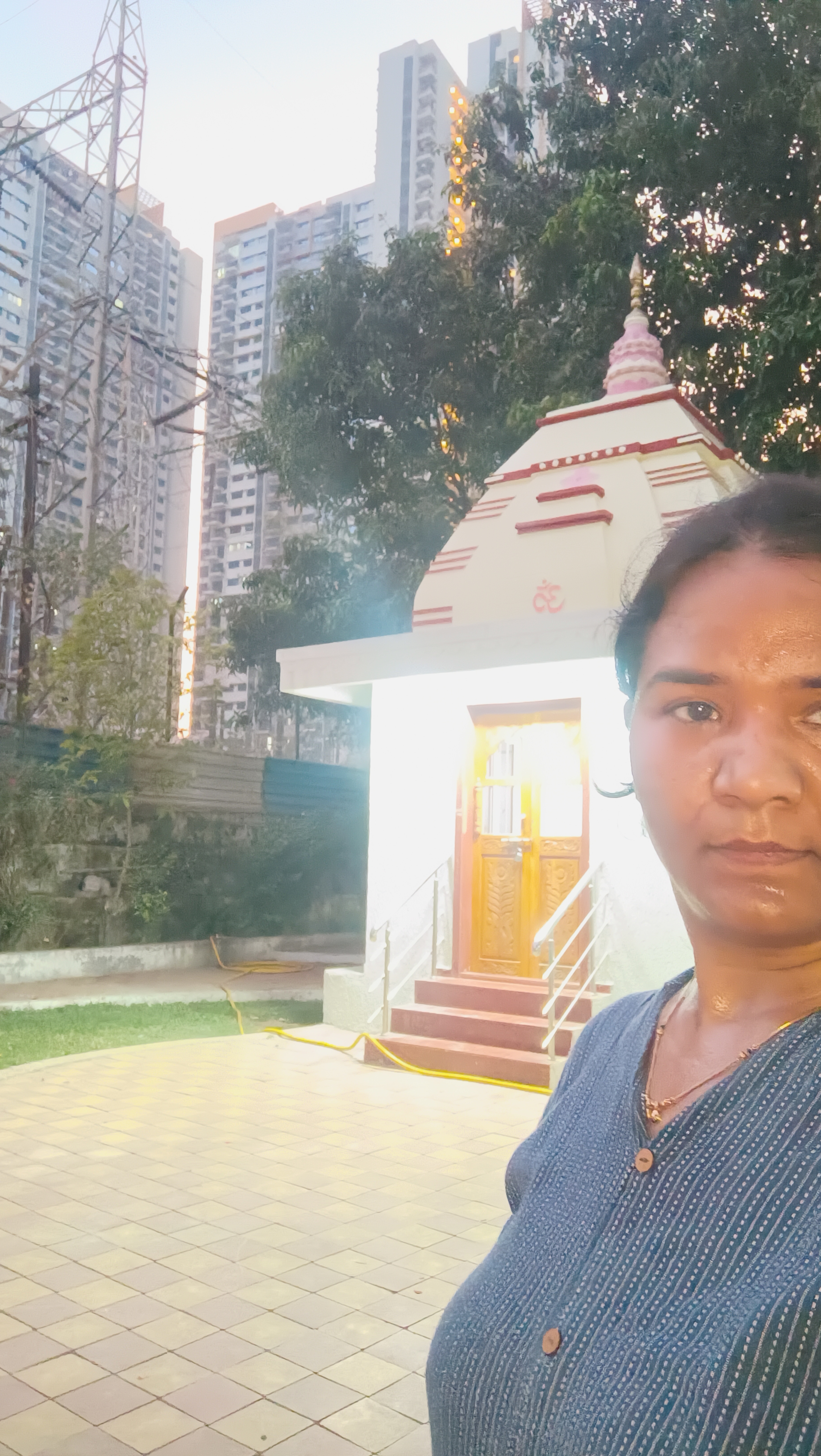 Selfie with Hanuman mandir in Ivy Botanica temple.Feeling proud during walk with selfie of temple