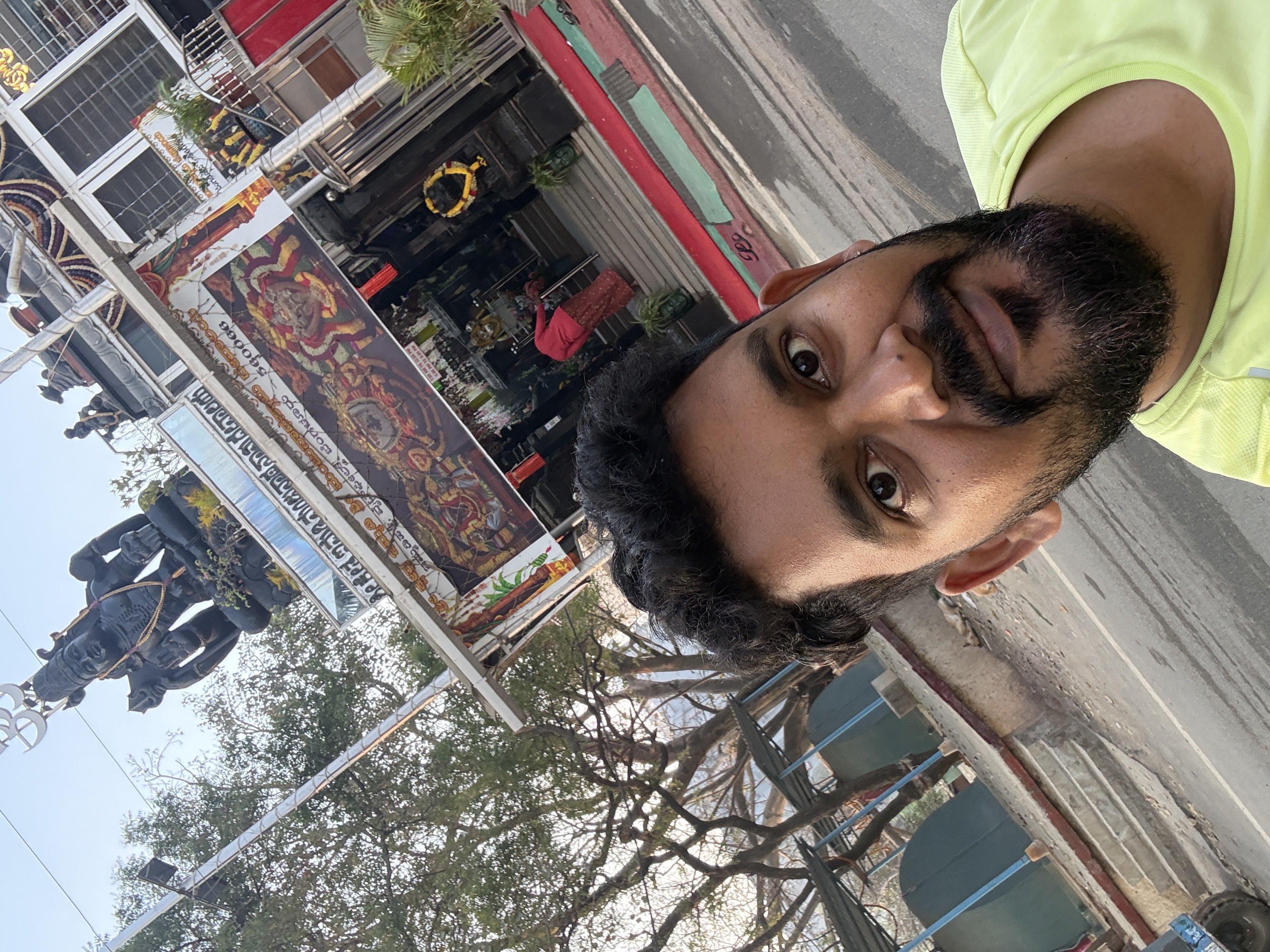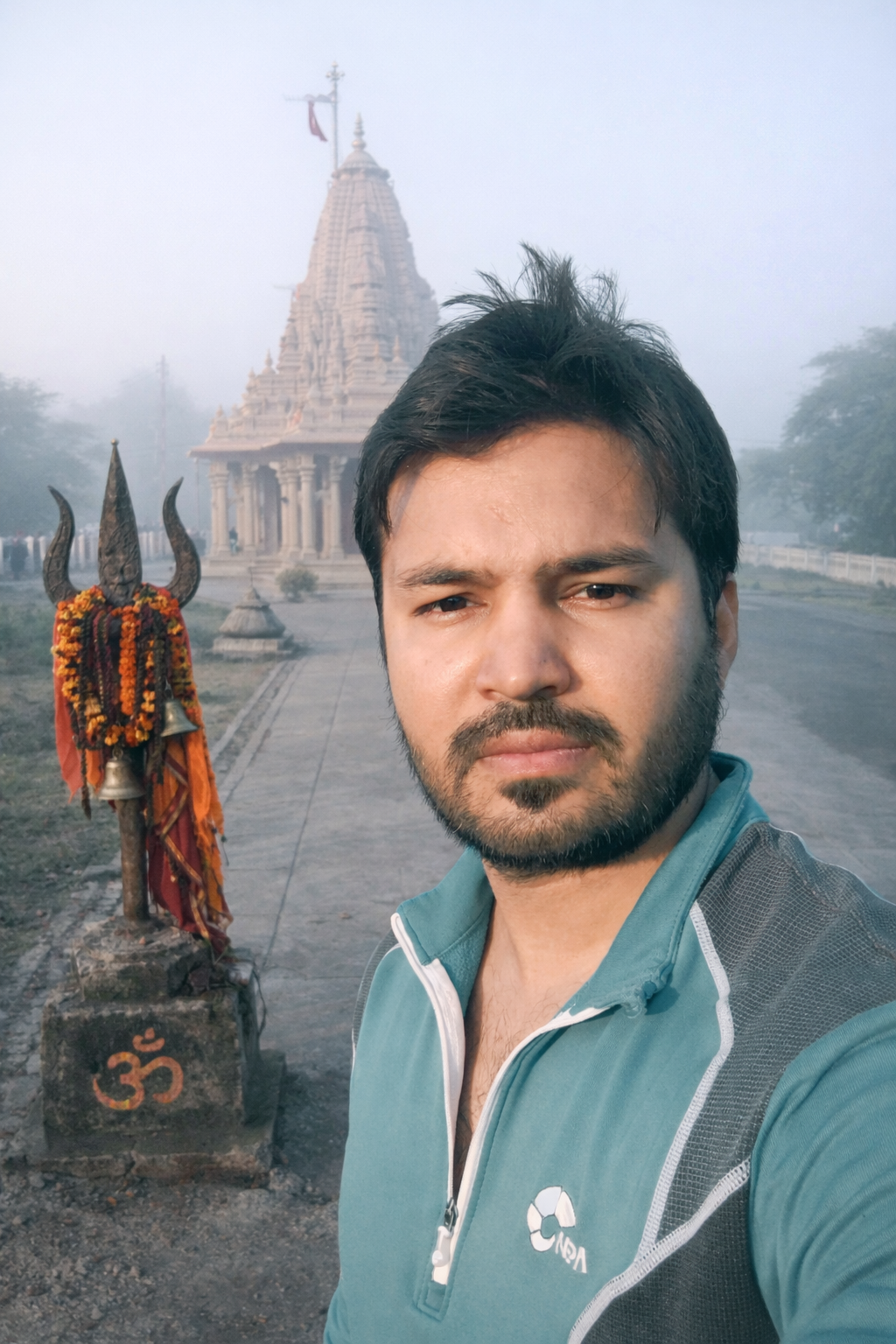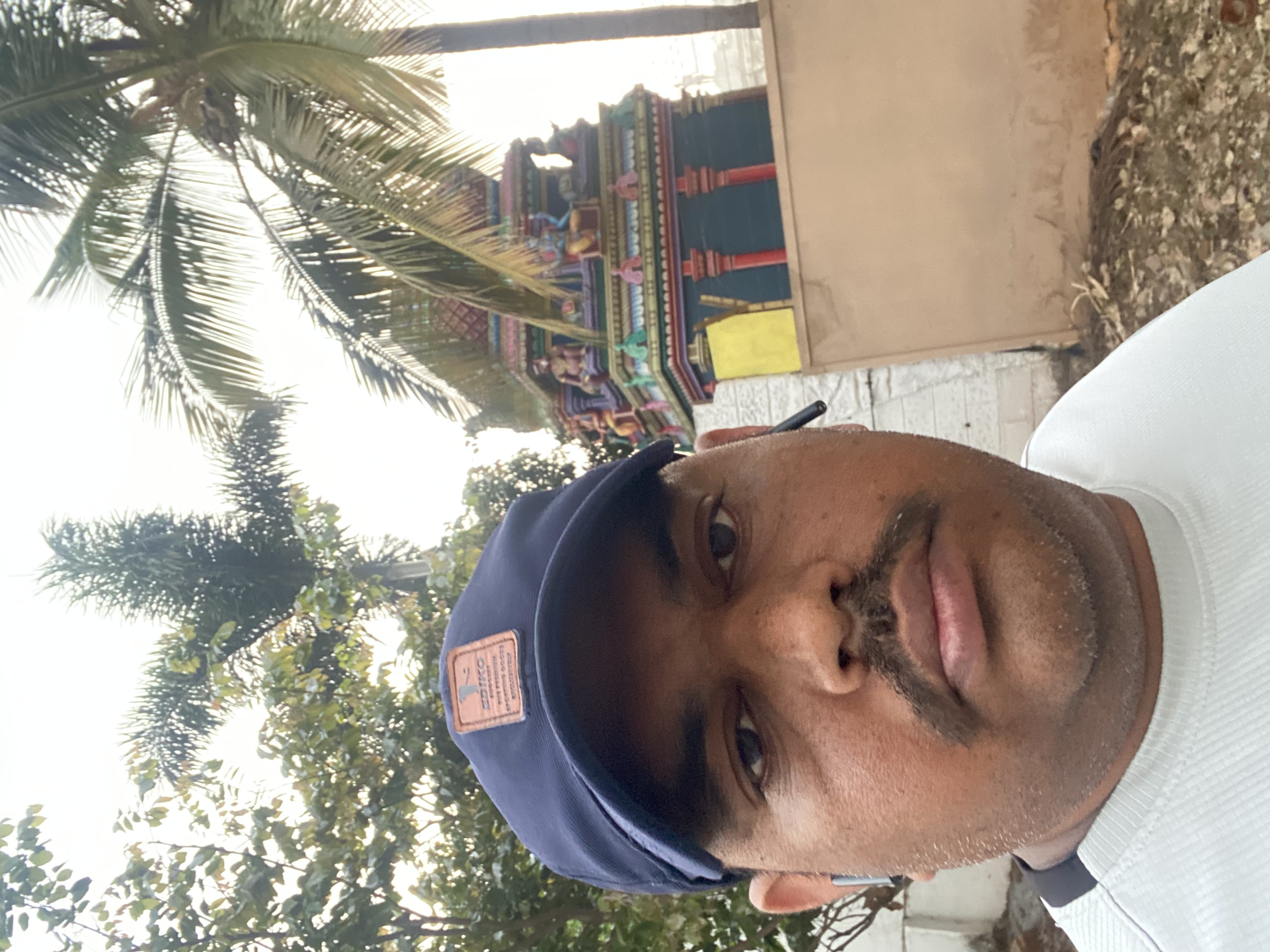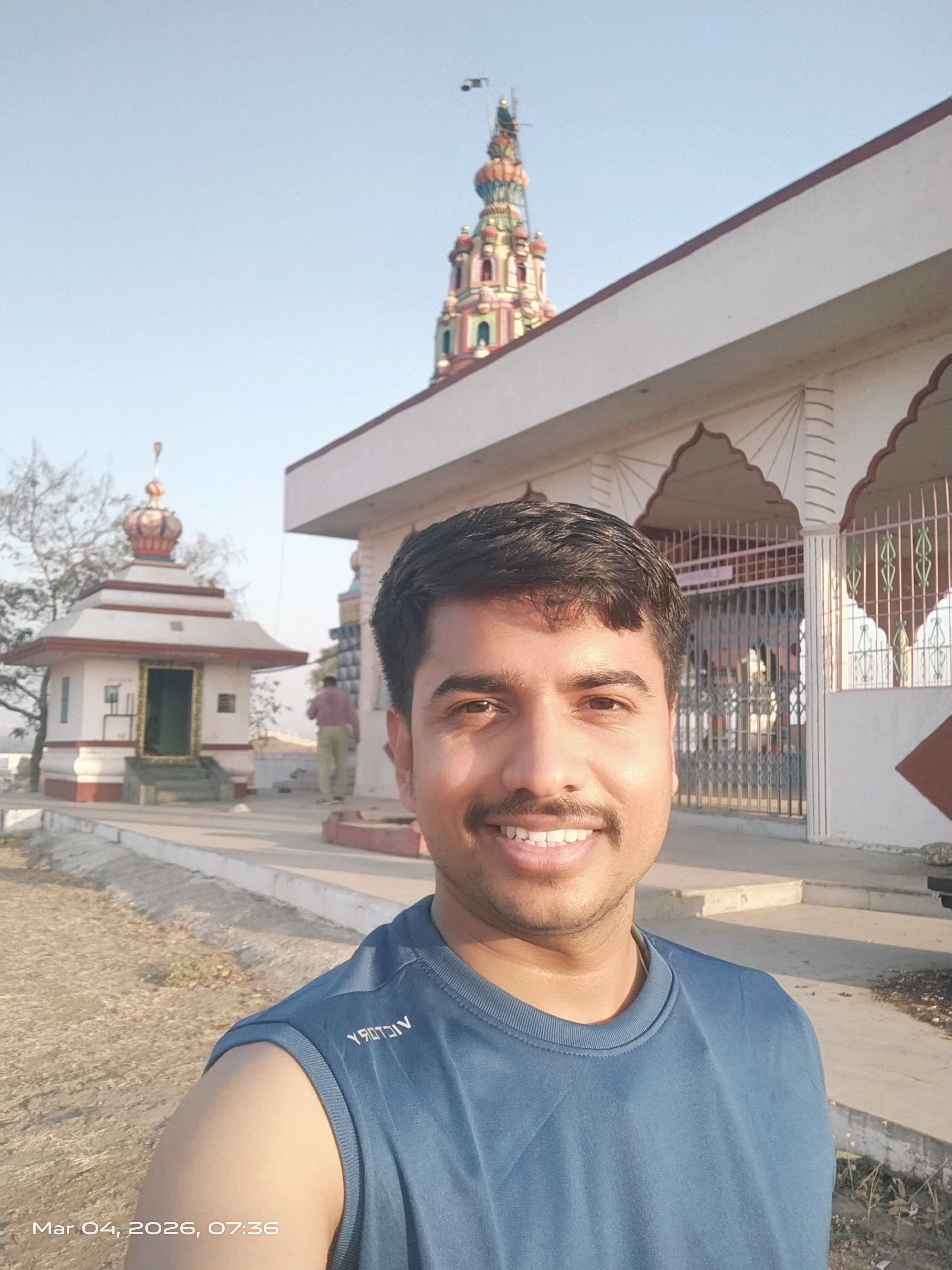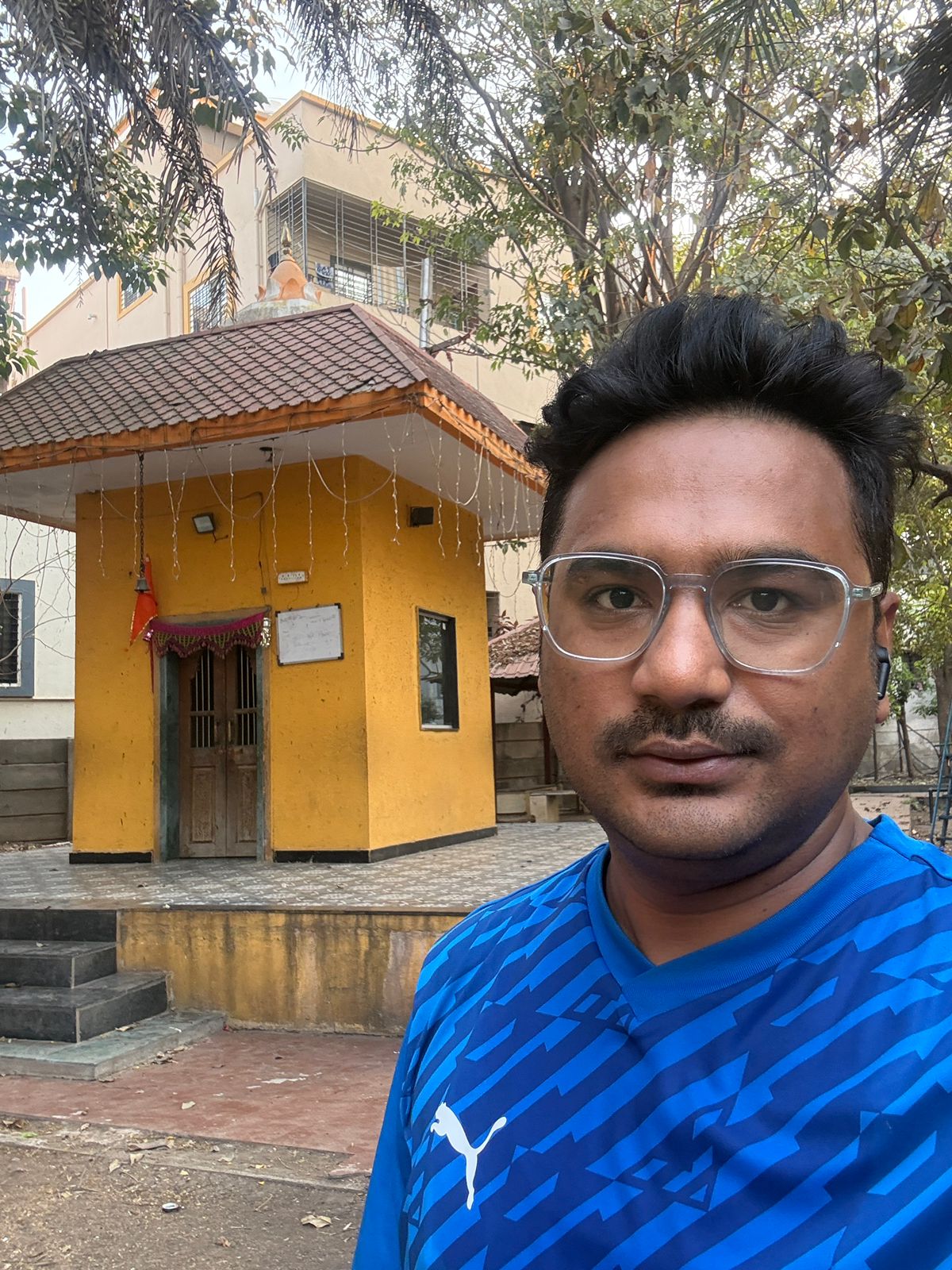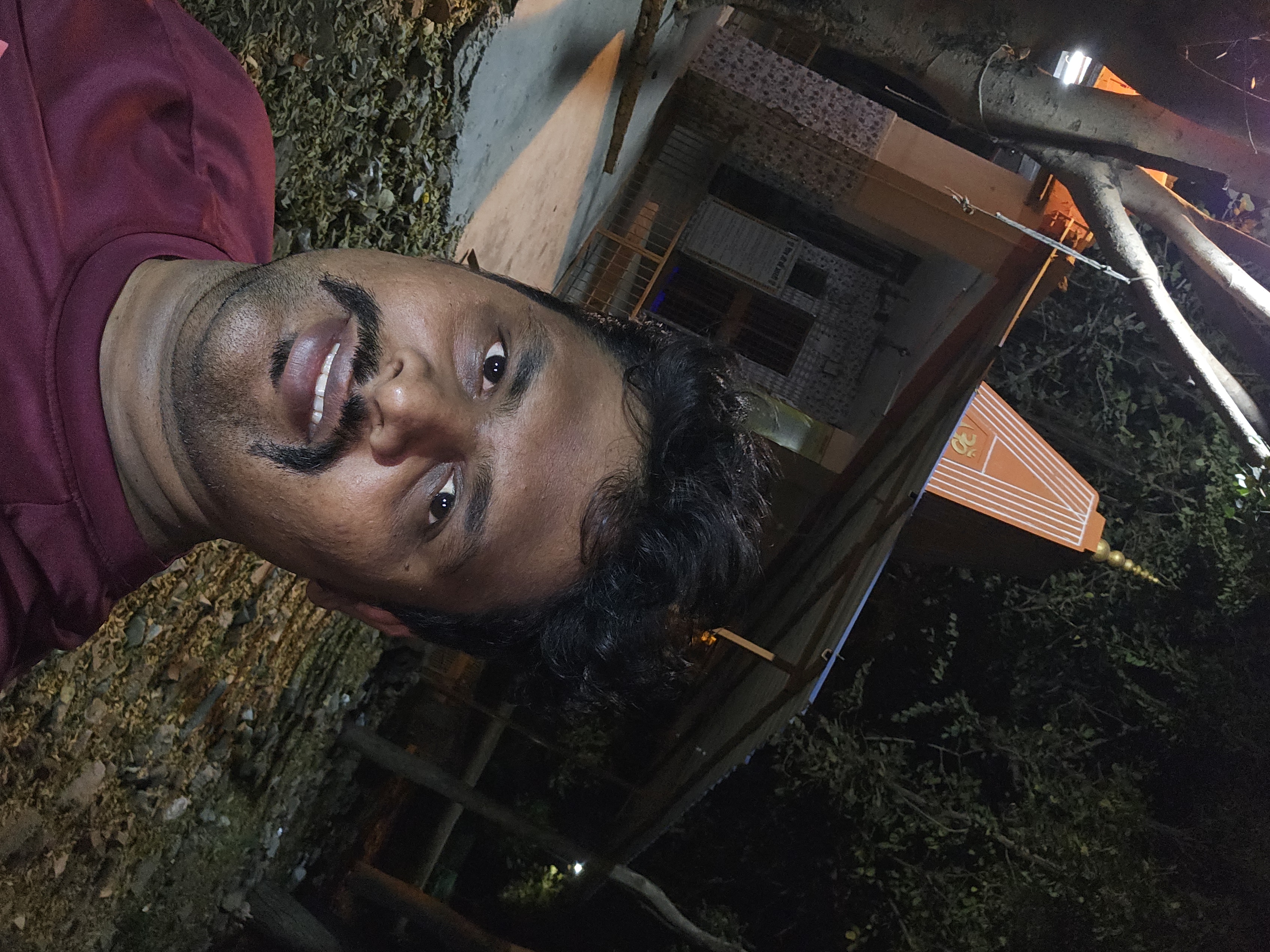Selfie with Hanuman mandir in Ivy Botanica temple.Feeling proud during walk with selfie of temple