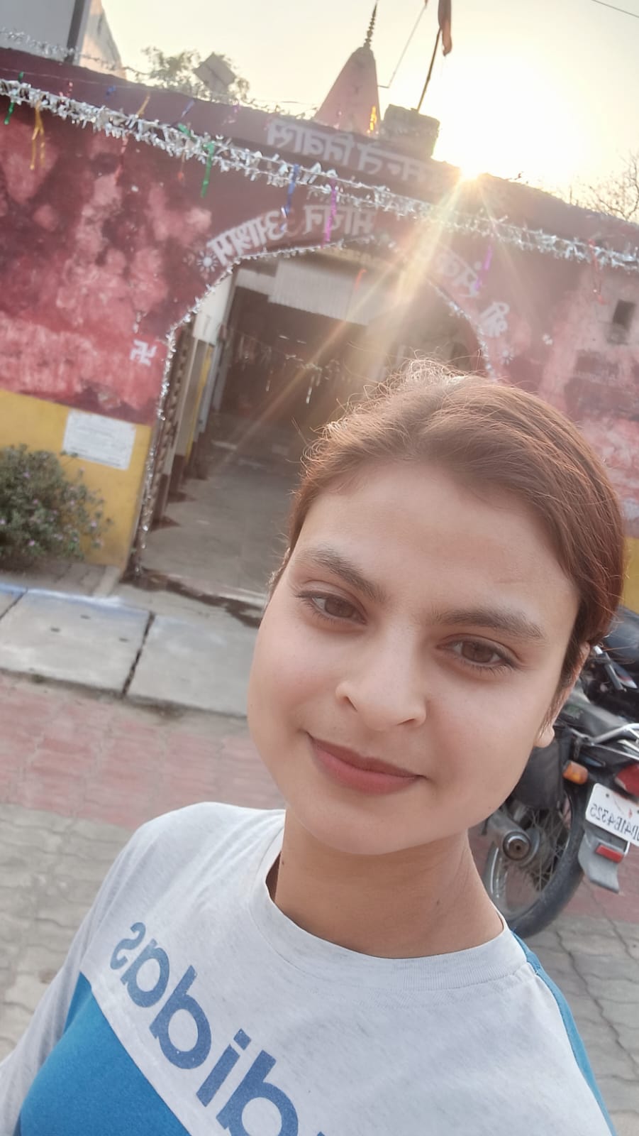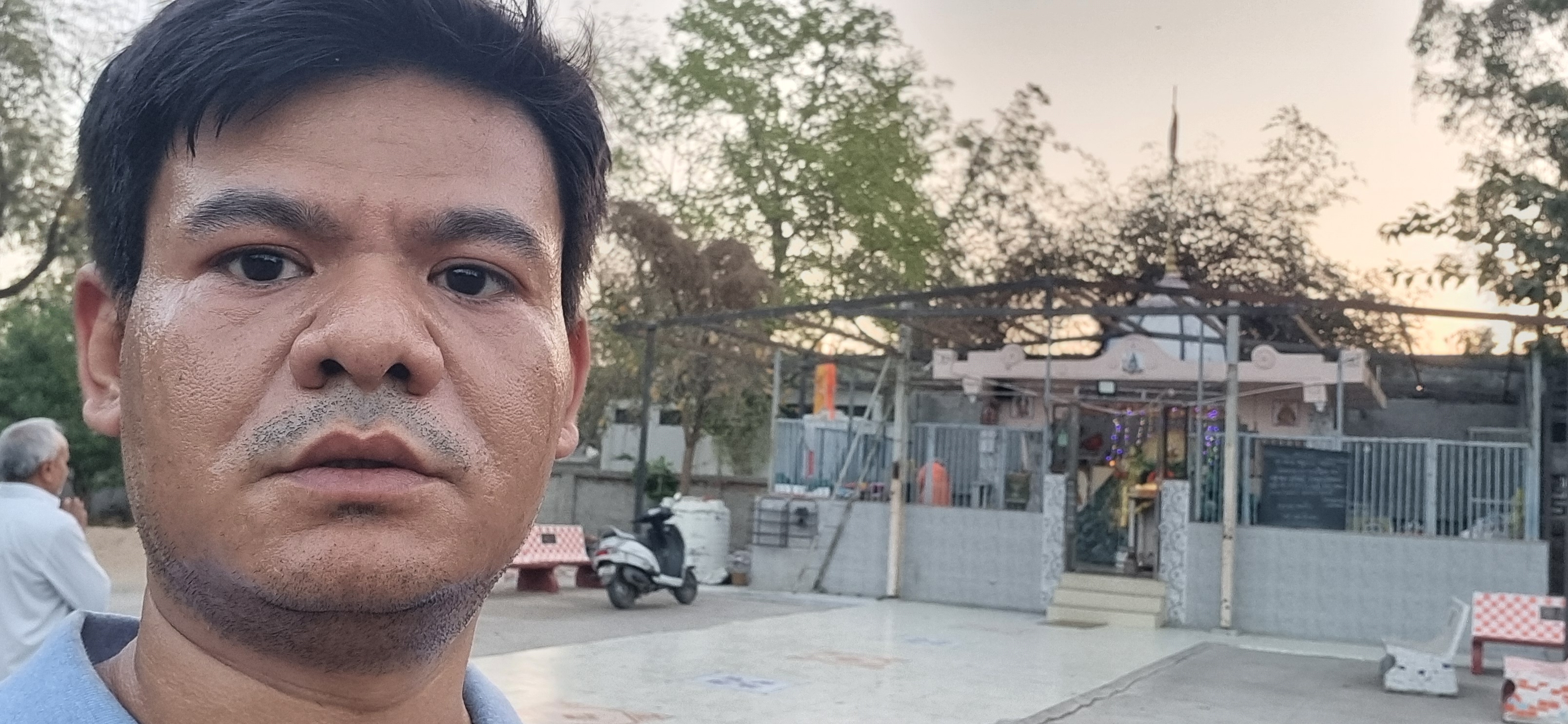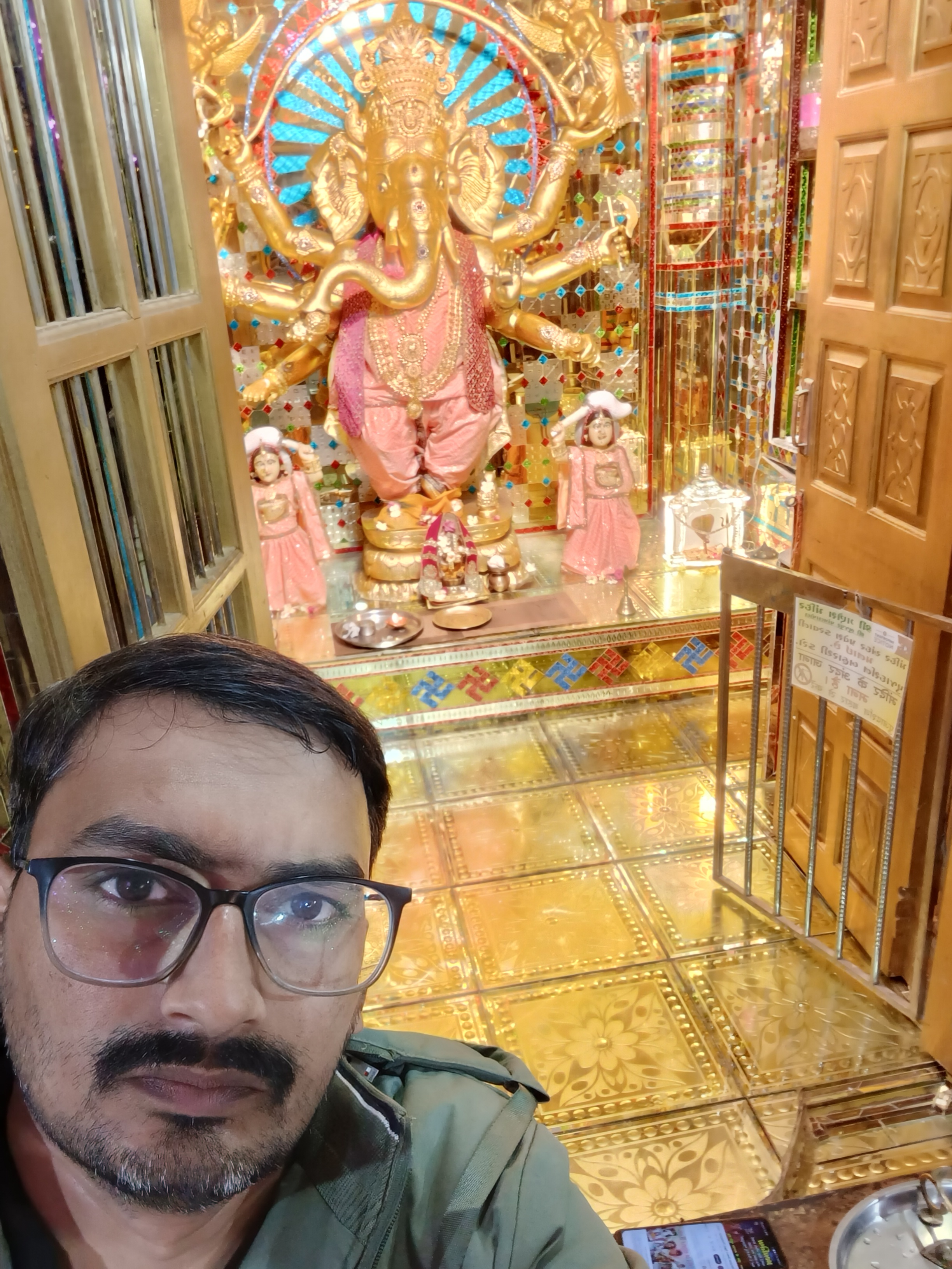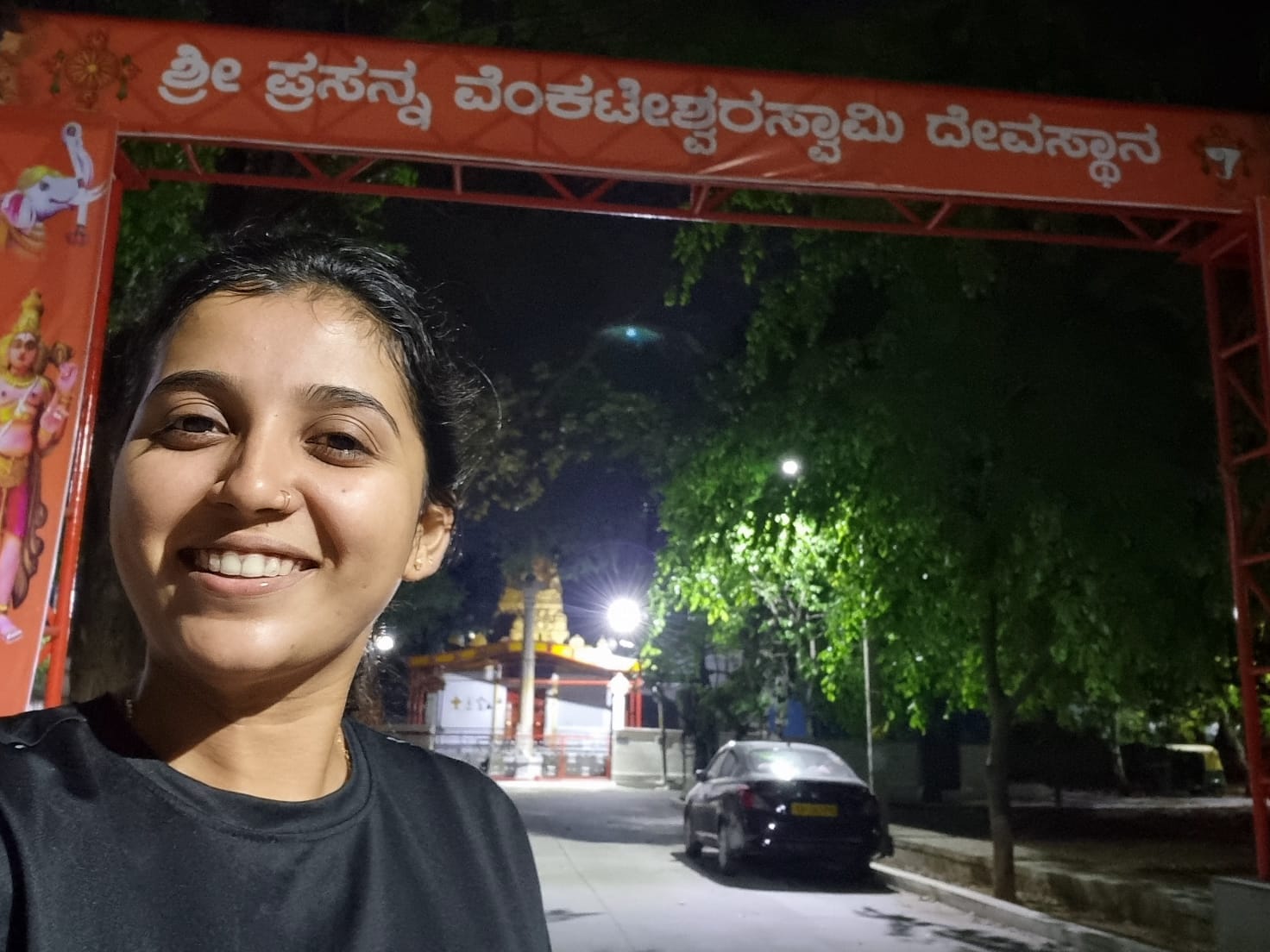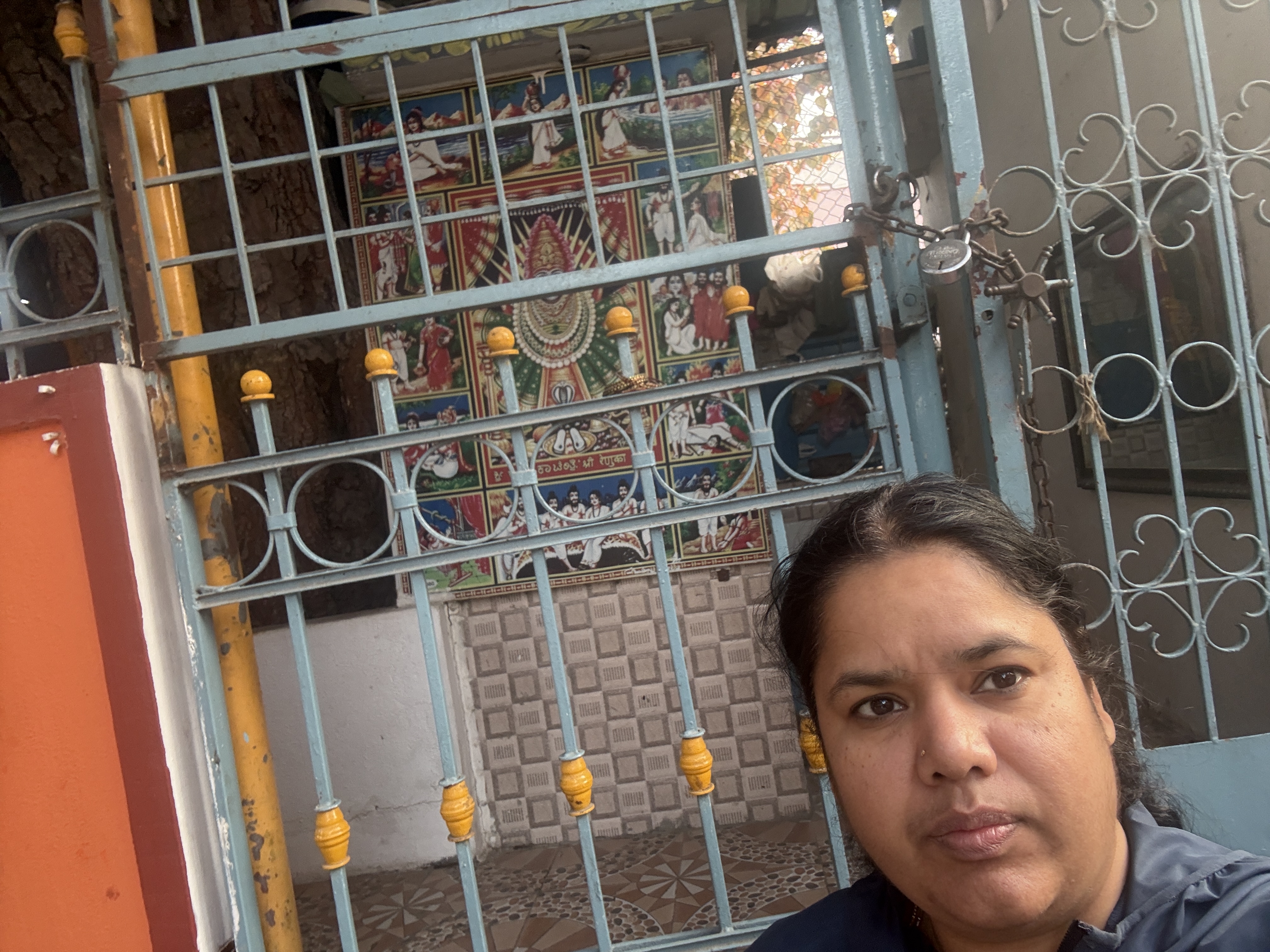 Selfie with Hanuman mandir in Ivy Botanica temple.Feeling proud during walk with selfie of temple