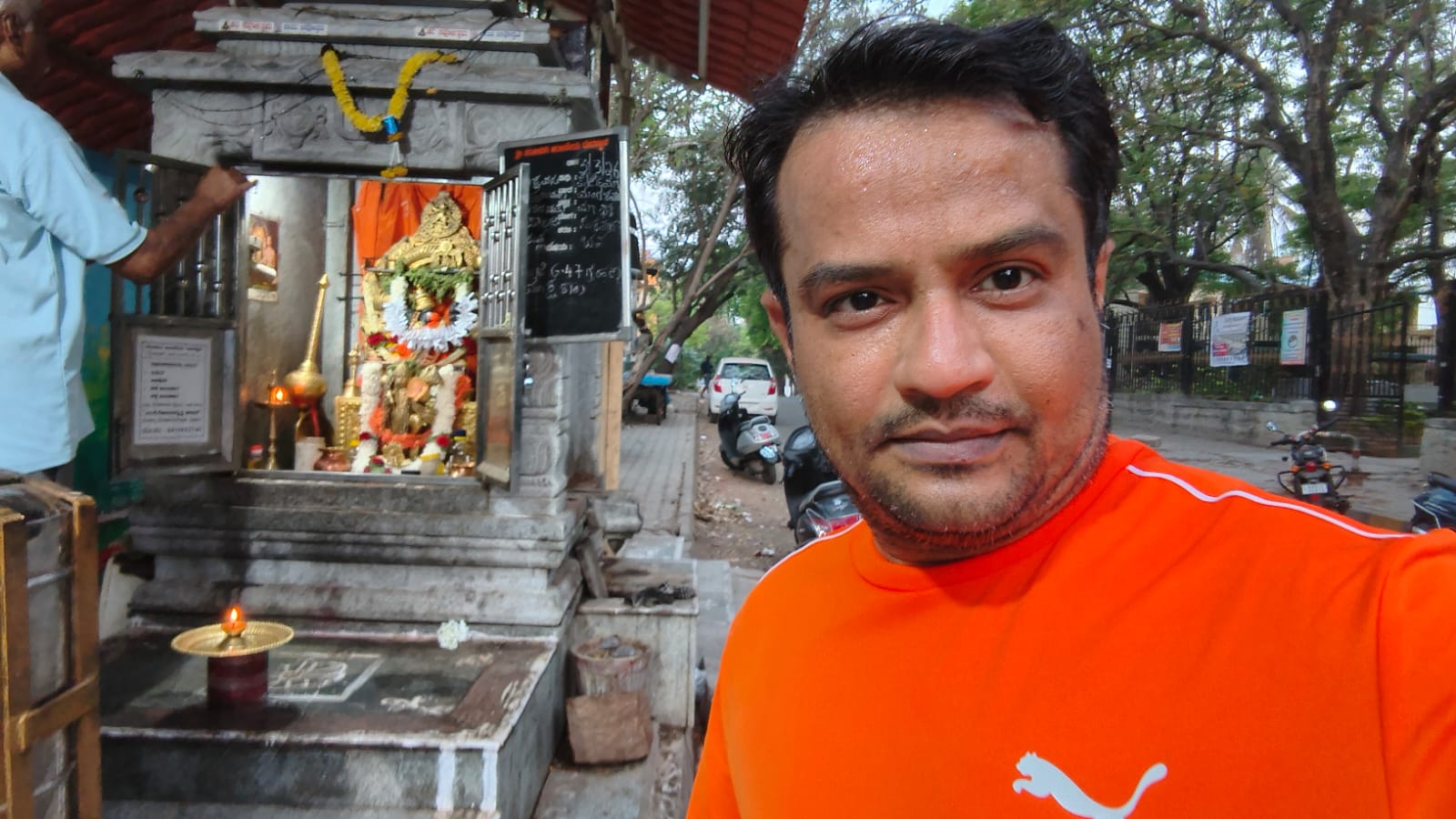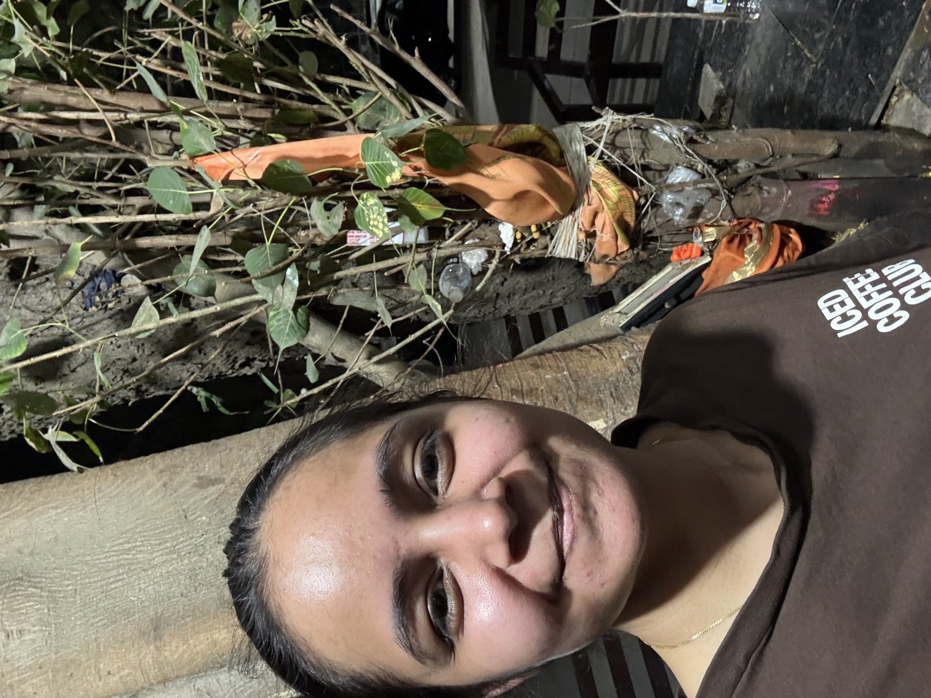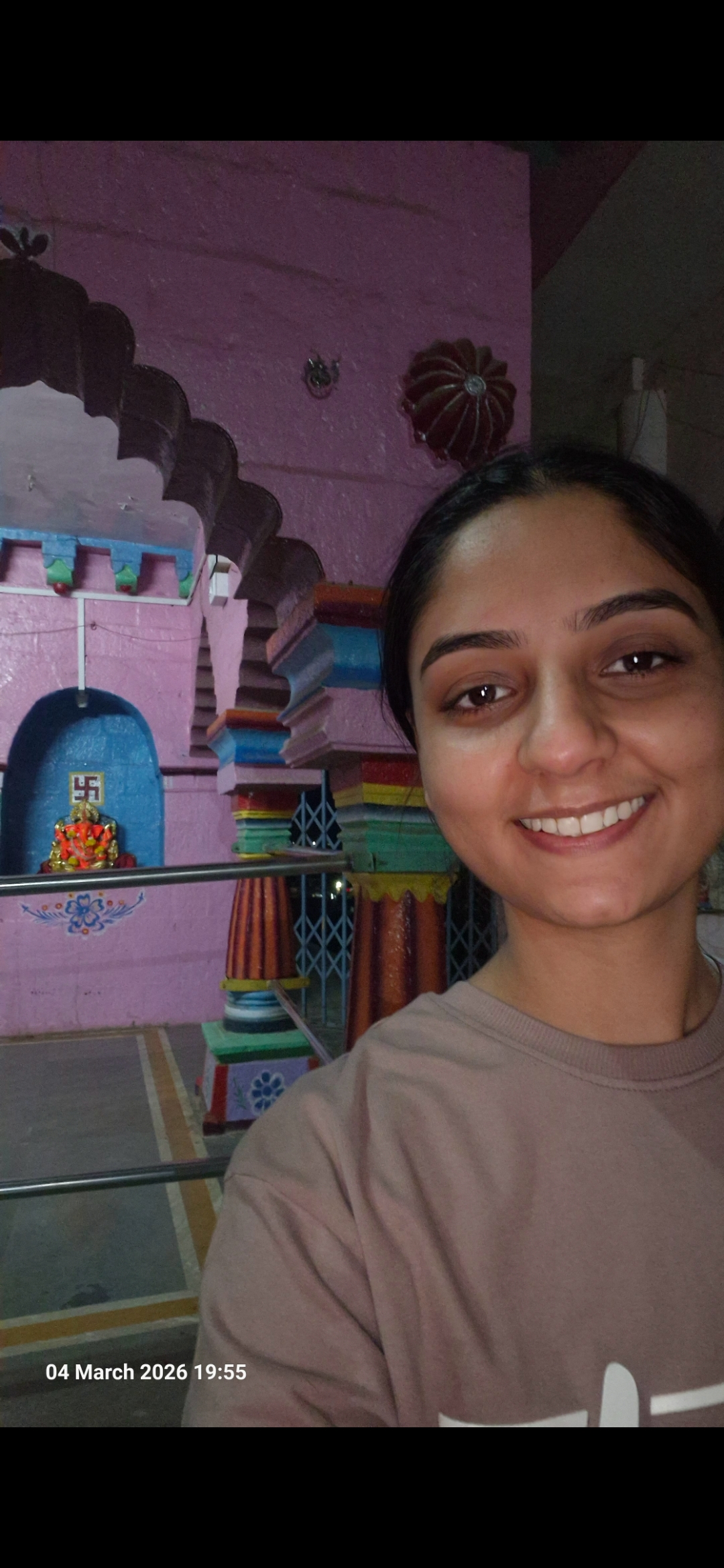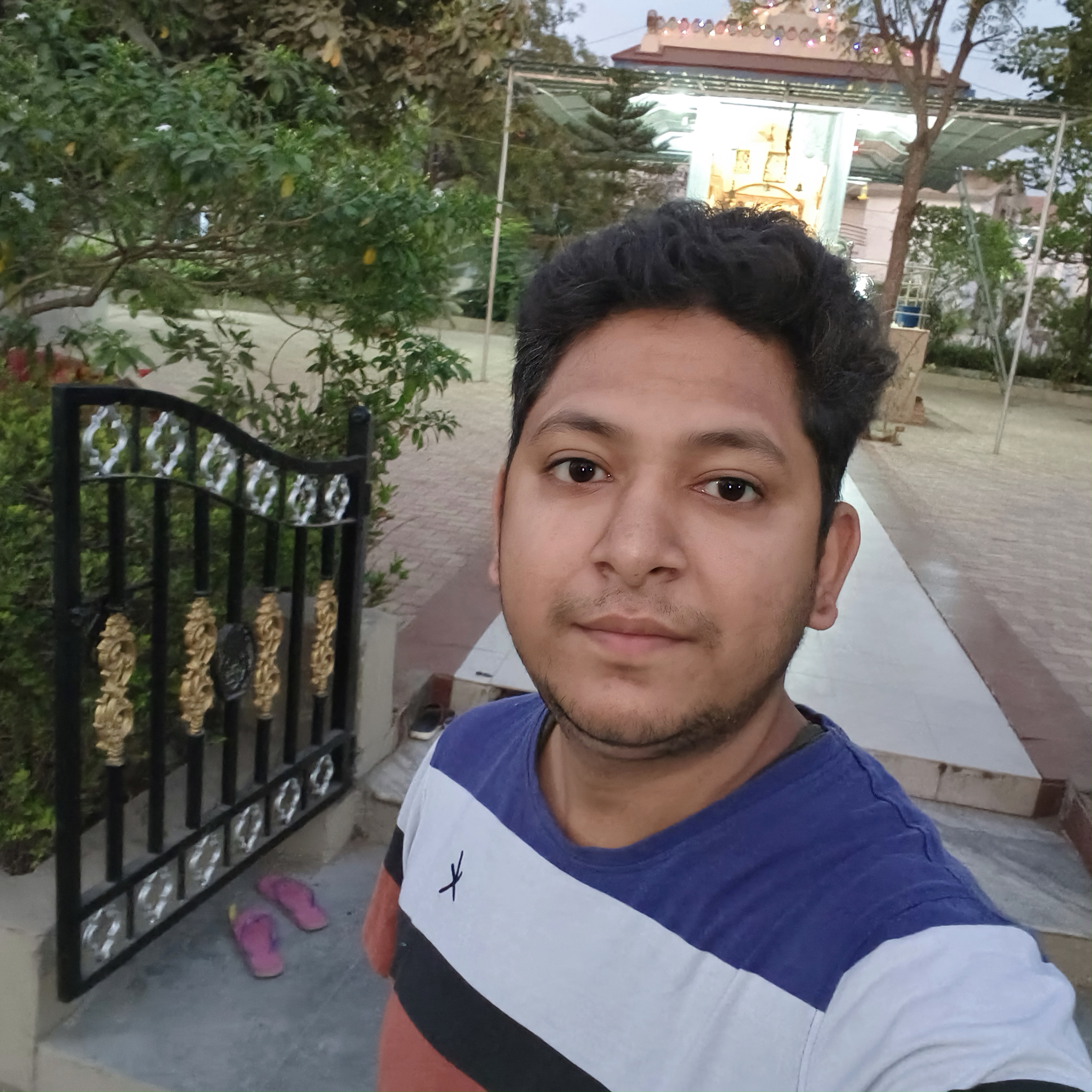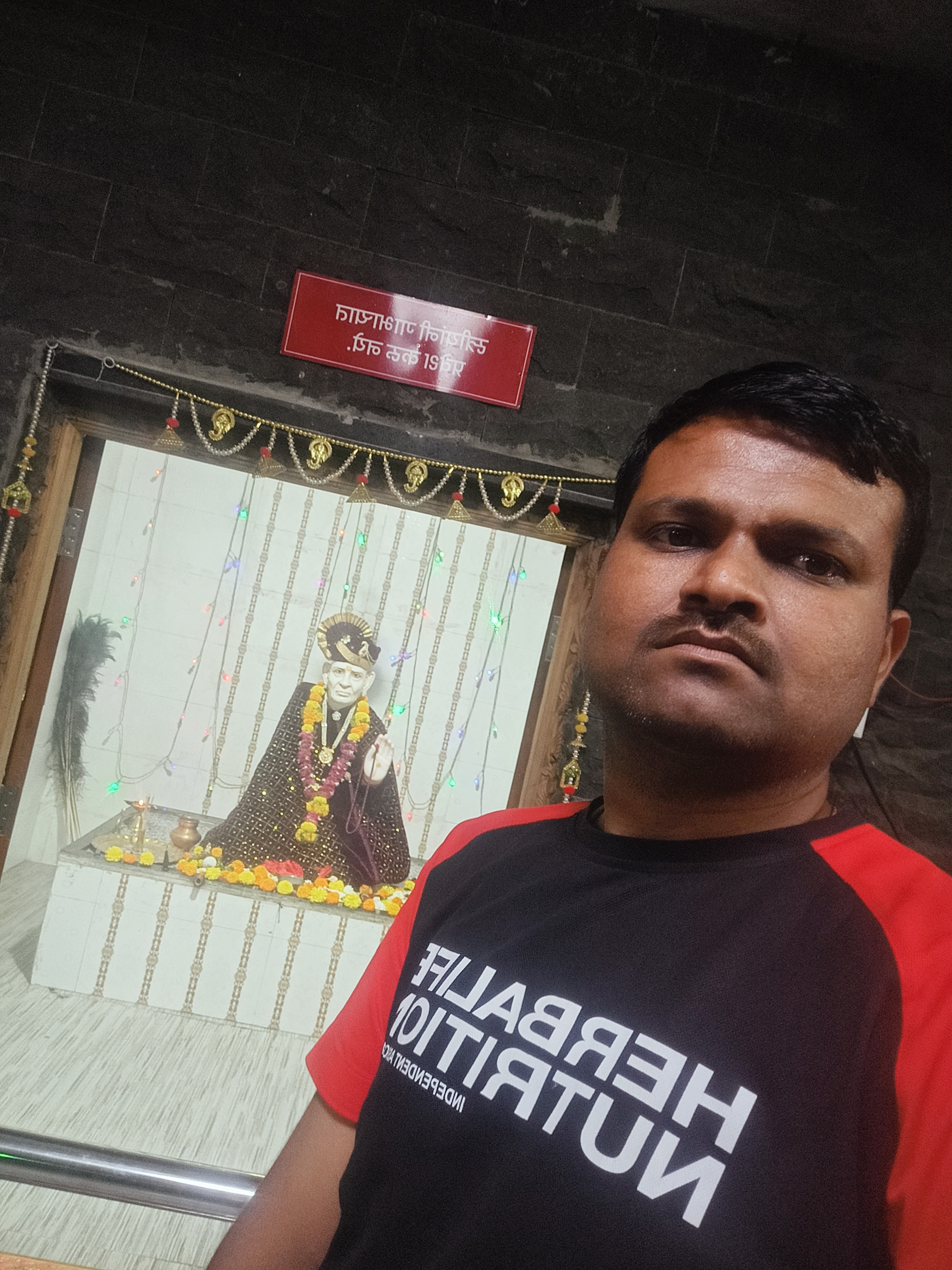 Selfie with Hanuman mandir in Ivy Botanica temple.Feeling proud during walk with selfie of temple