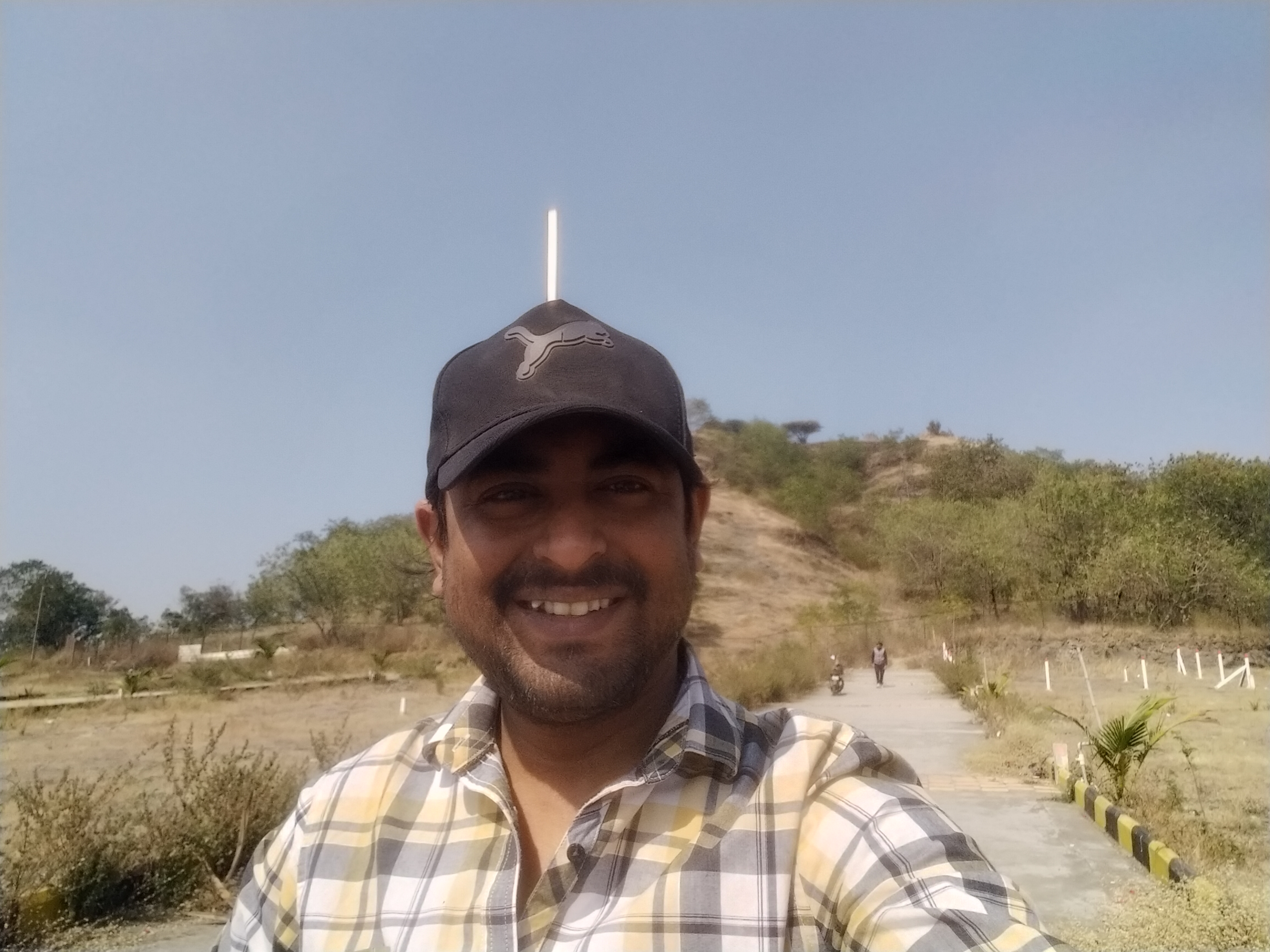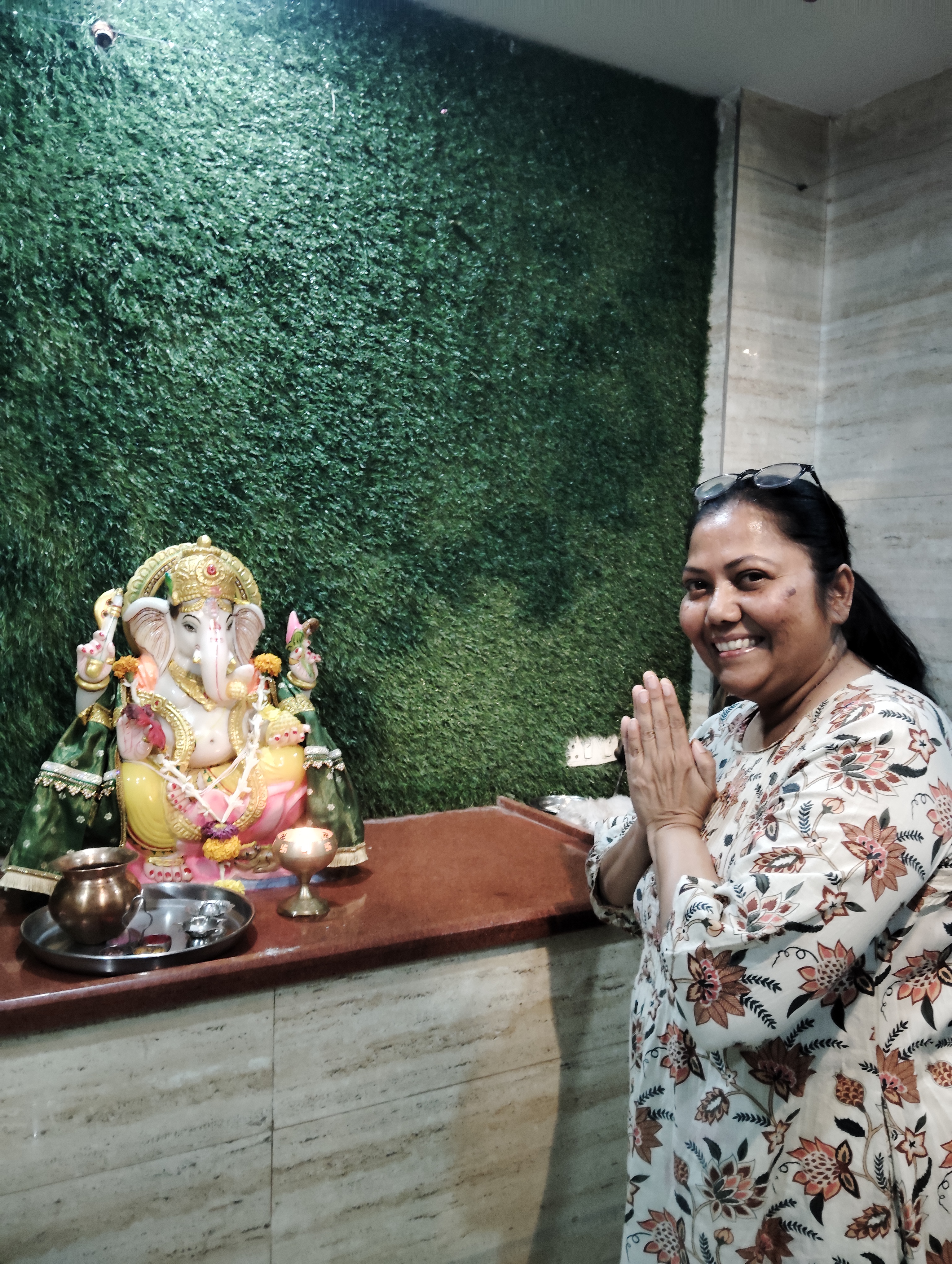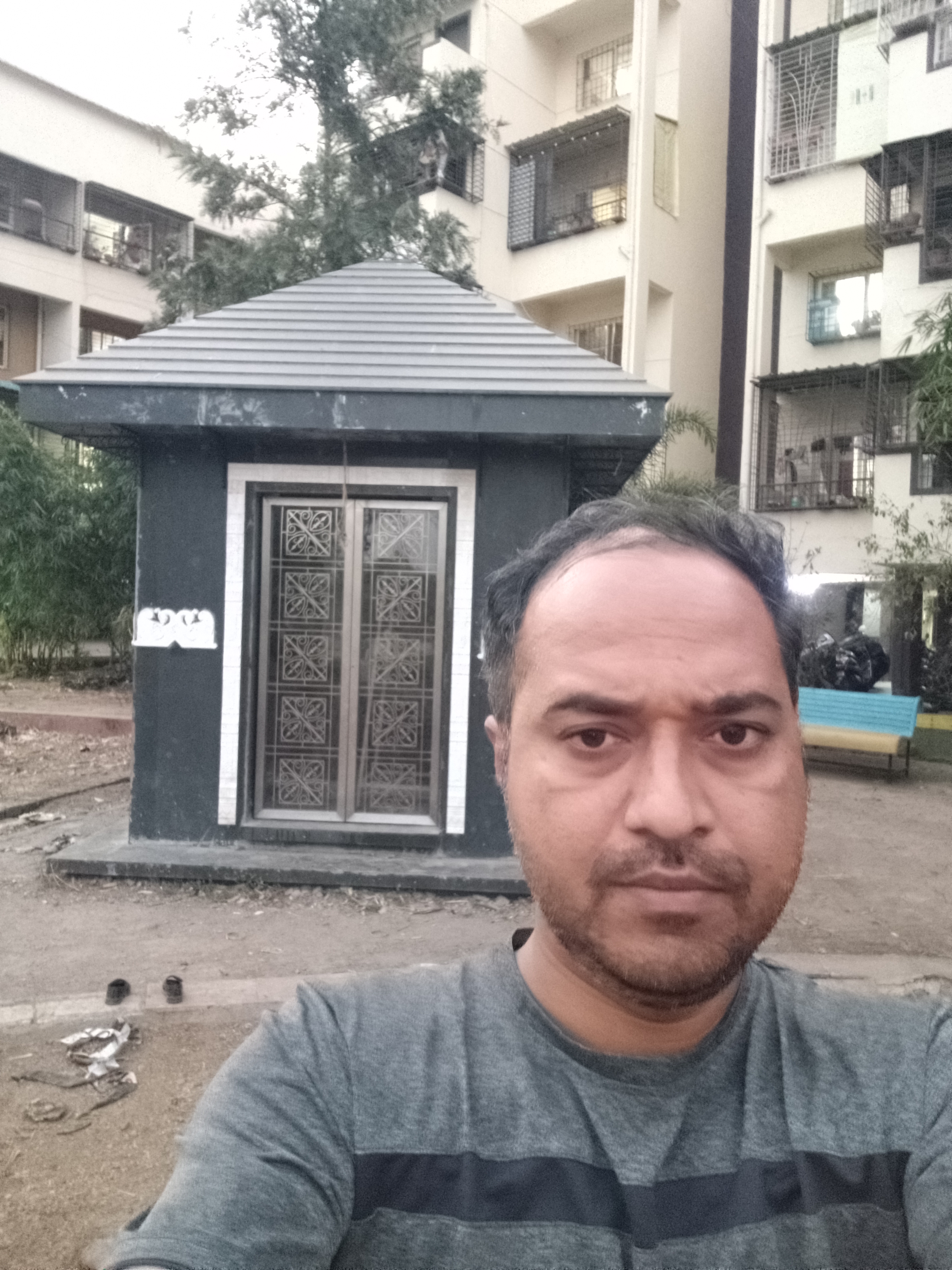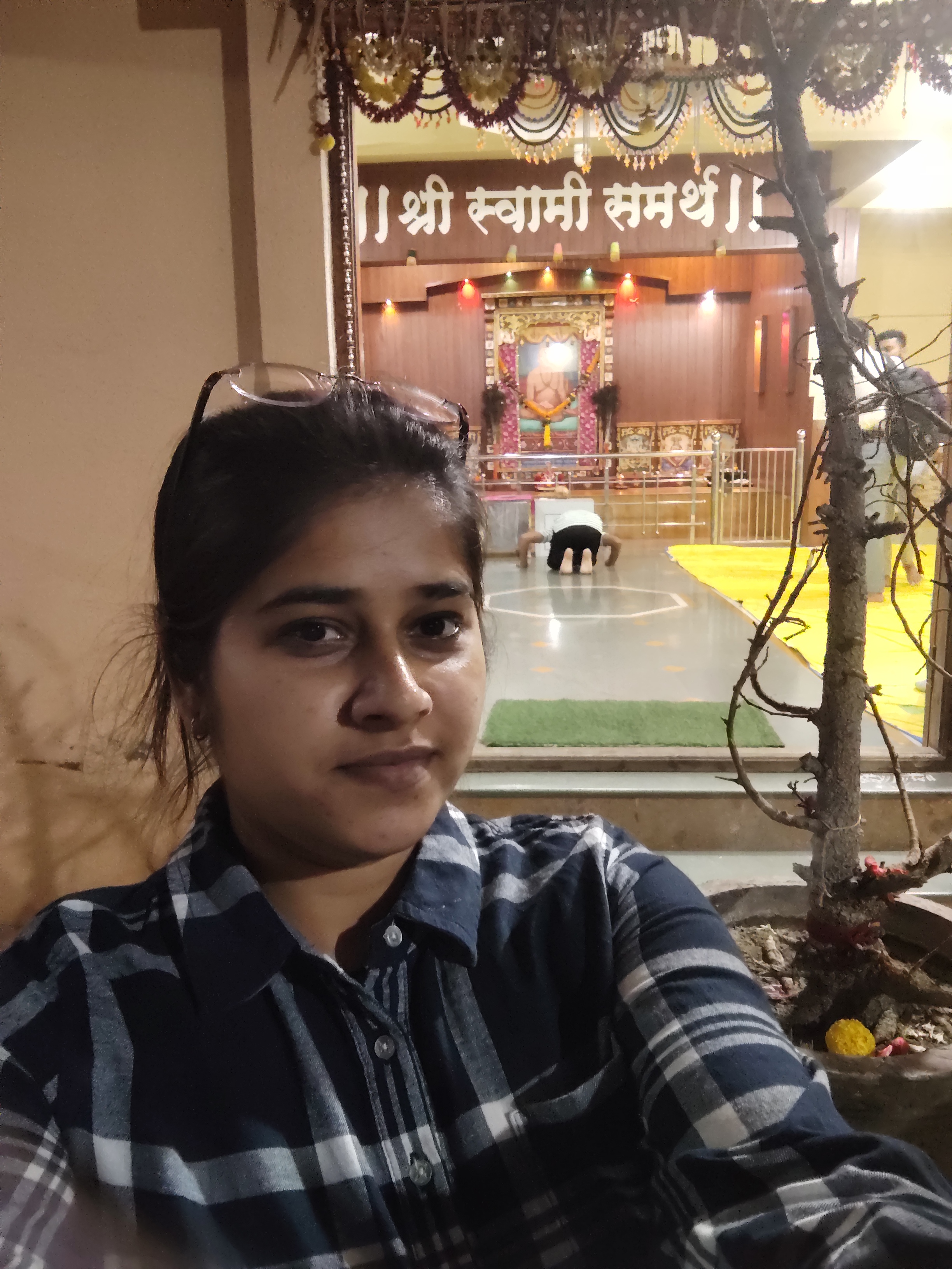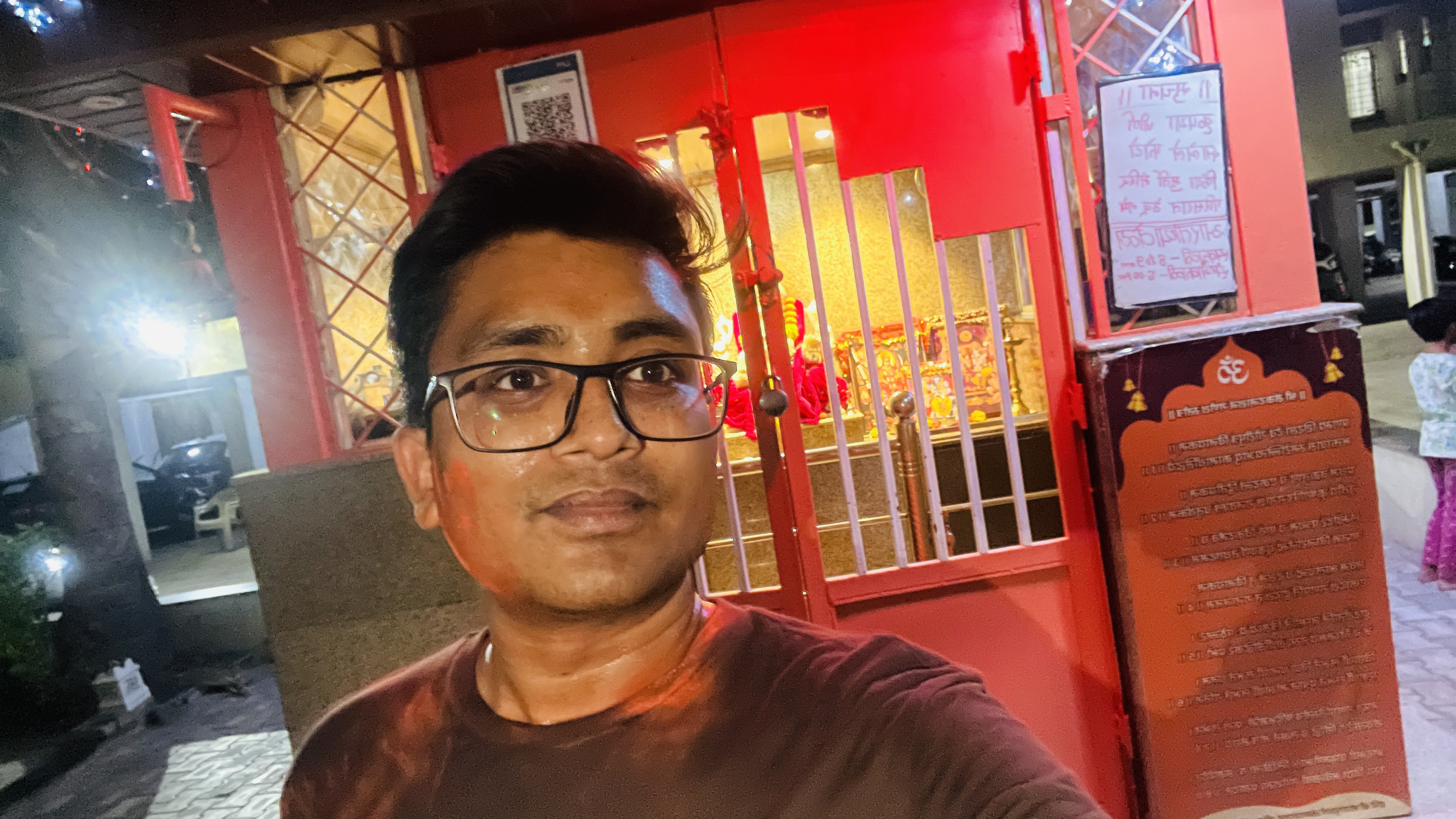 Selfie with Hanuman mandir in Ivy Botanica temple.Feeling proud during walk with selfie of temple