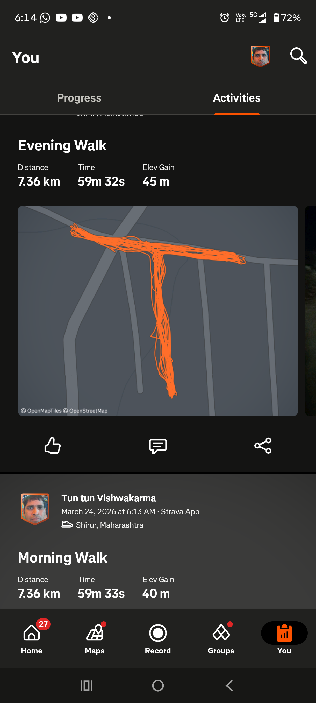 Restarted my fitness journey with a 7 km trail ??????????? Not about speed, just about showing up. Walking with a friend made it more fun and motivating ???????? Consistency over excuses ?????
