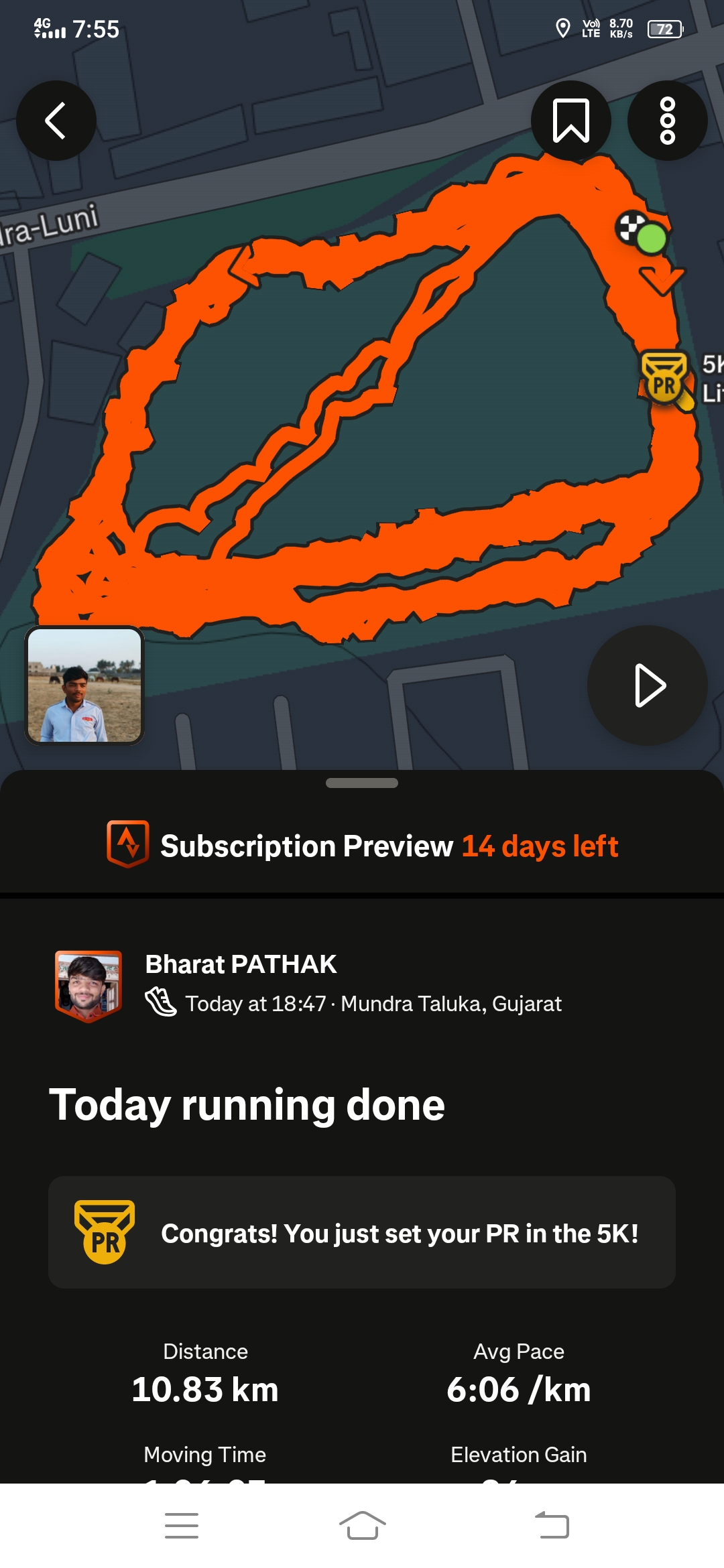 Regularly running 7.0 km it’s very good for ur Health thanks for this good opportunity fit Brit