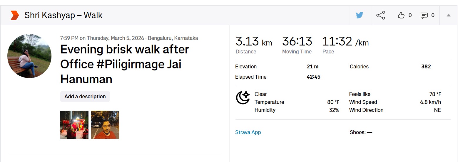 I have started walking every morning as part of our company’s FitBrit campaign. Over the past few days, this routine has given me immense satisfaction, especially the feeling of waking up early and beginning the day with a healthy activity. Now, I feel motivated to continue my morning walks daily, even after the campaign ends.