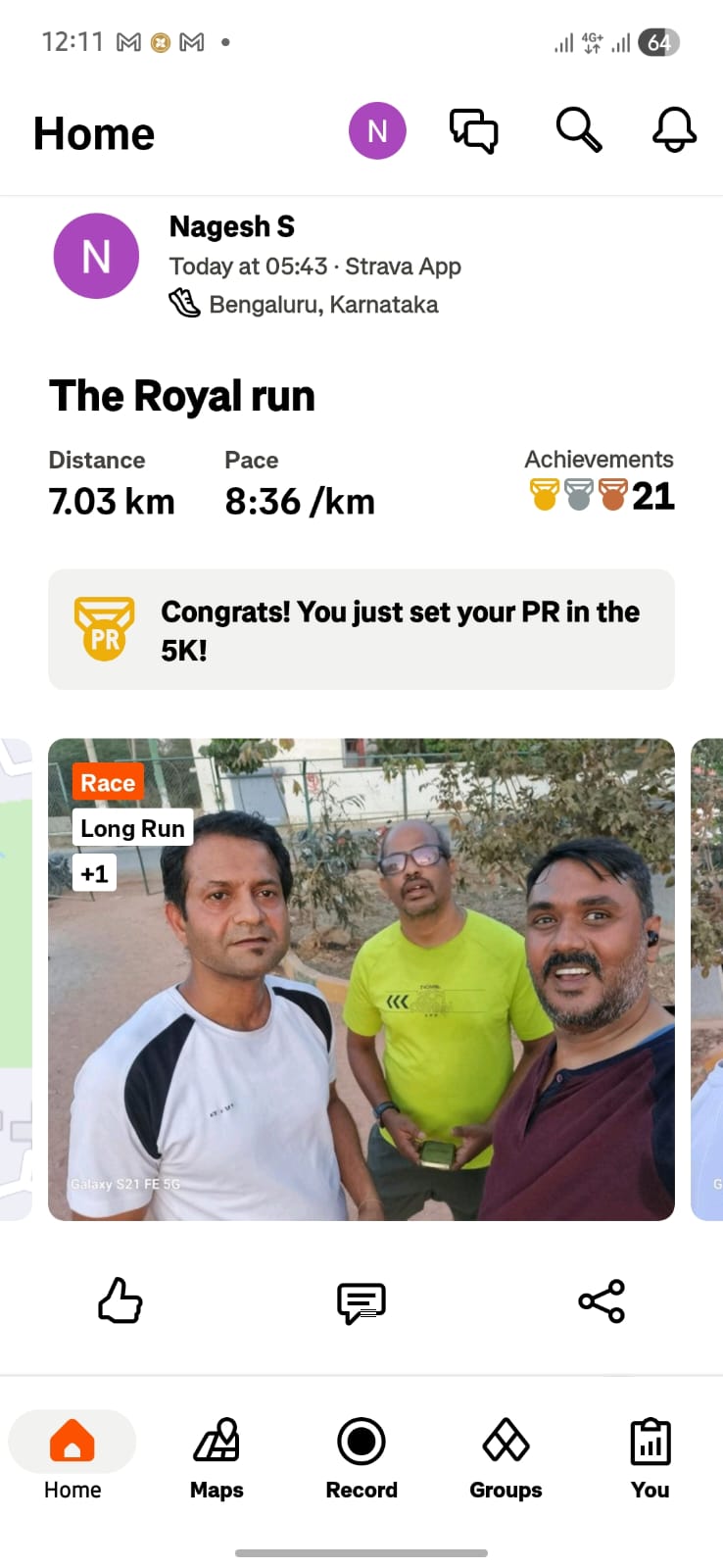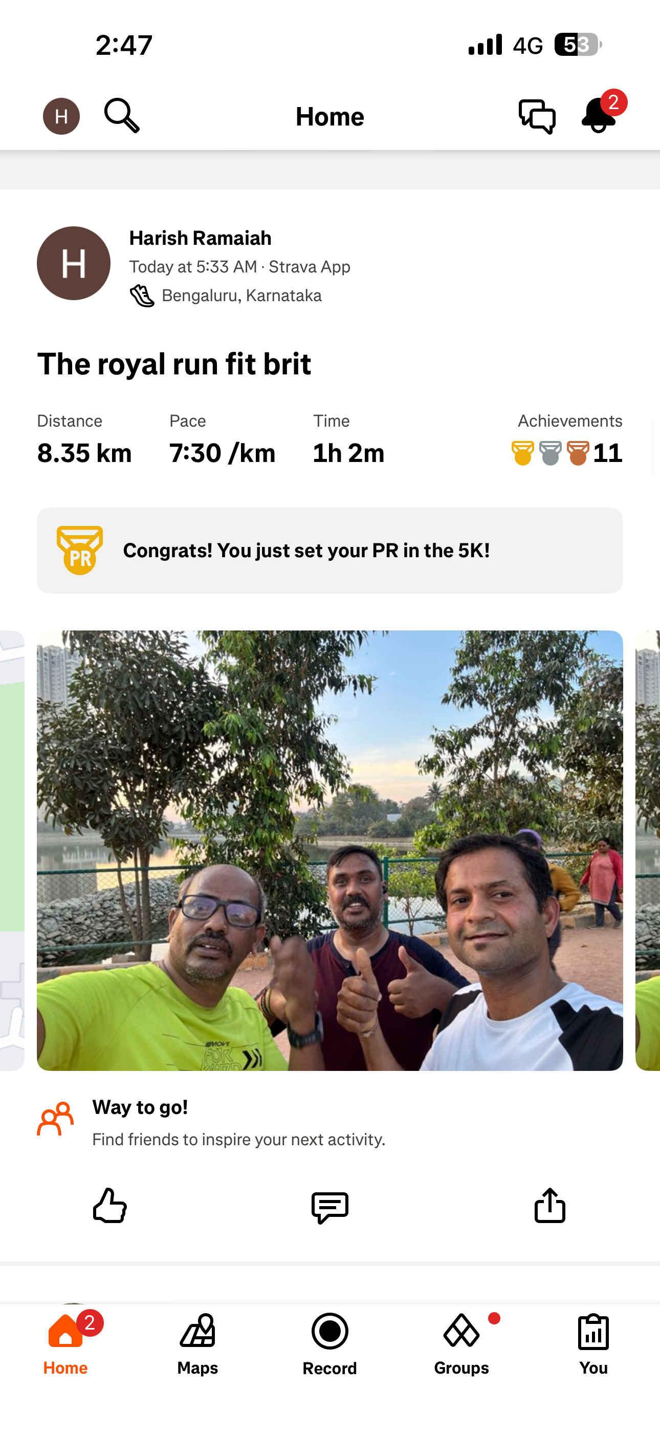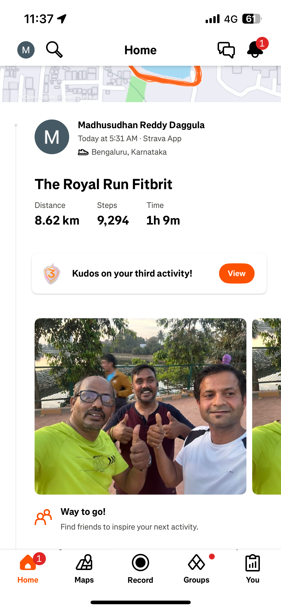 Today with friends went on the royal run contest and completed the task. Fitbit is a great motivation for upkeeping our health and fitness.