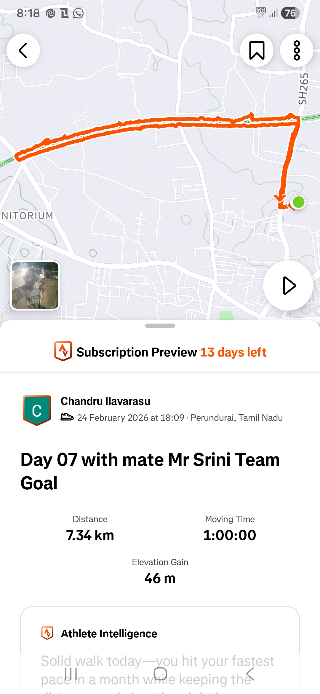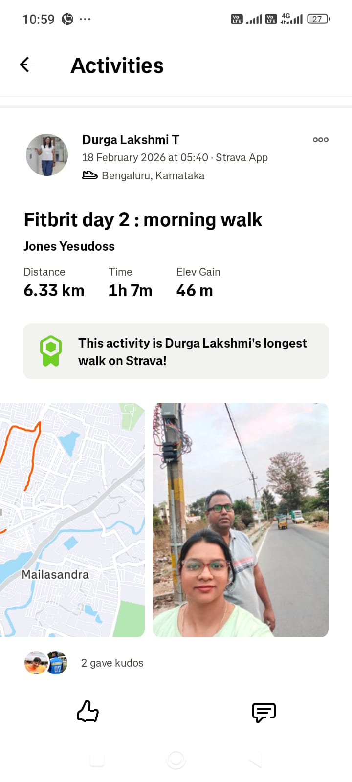 Hi, Great feeling of daily walking. Walking really helping to feel energetic and happy. Even family members are also appreciated this Fit brit activity. Good fitness activity to keep you healthy. Small step and big achievement. Thank you.